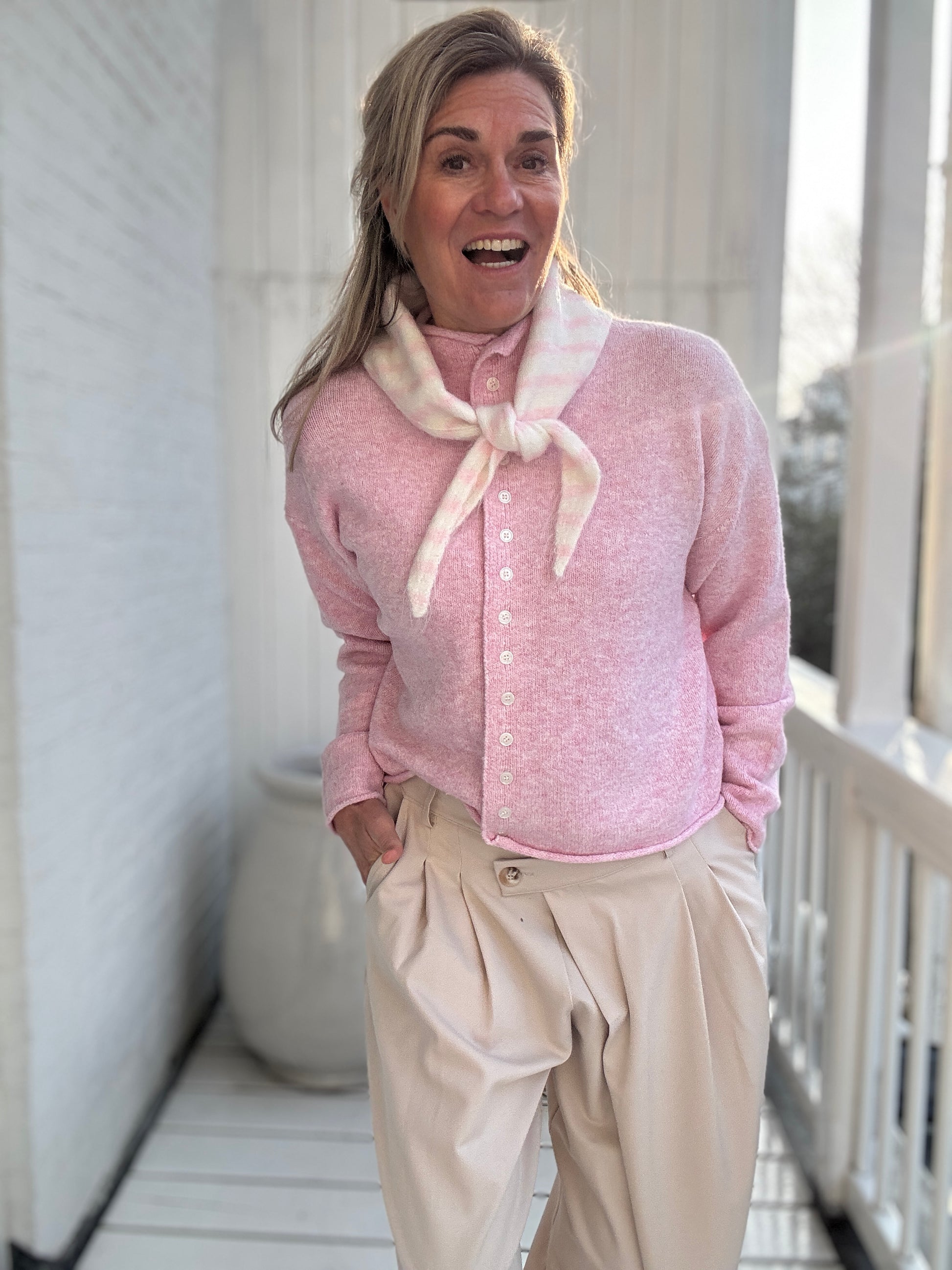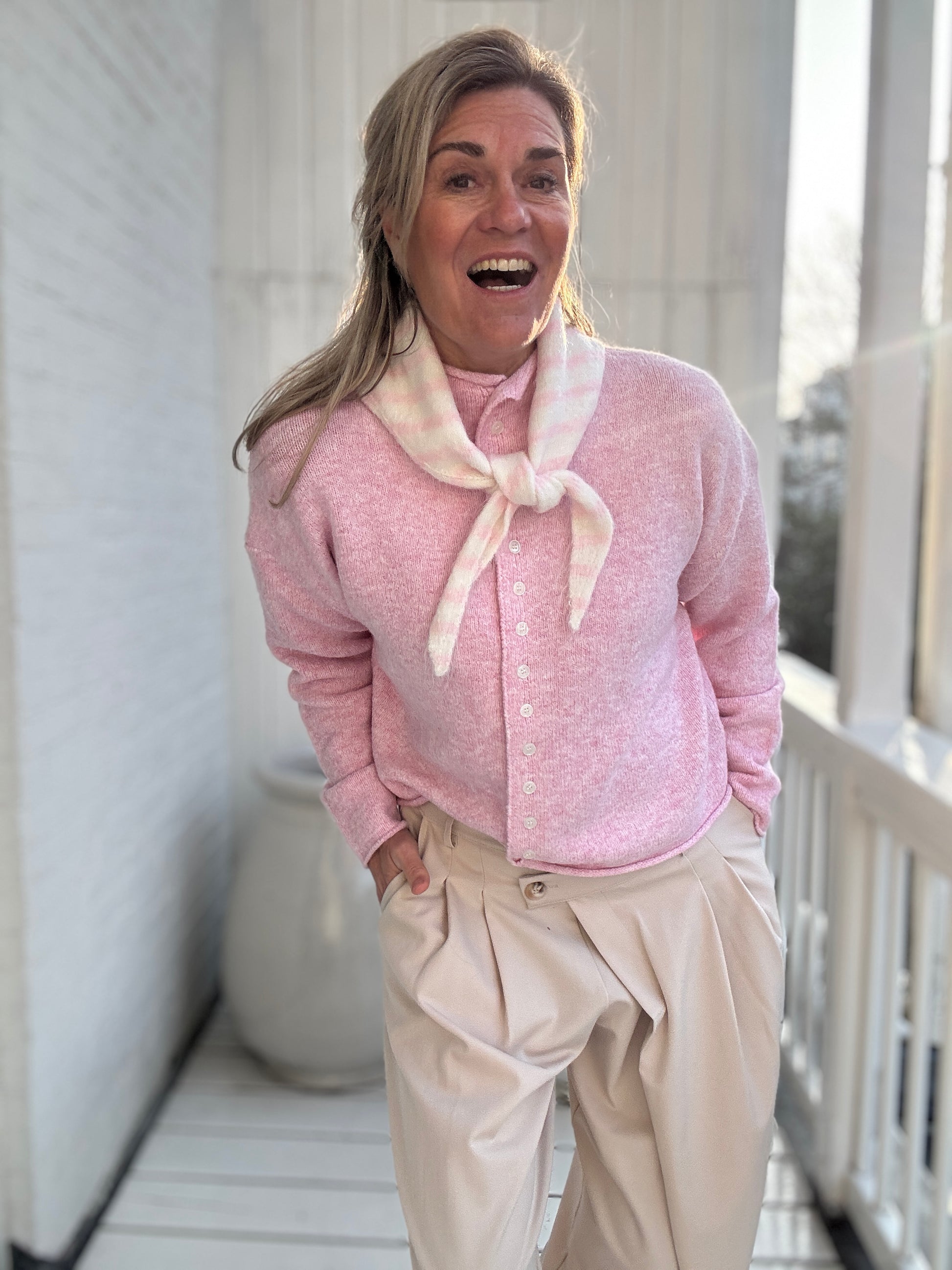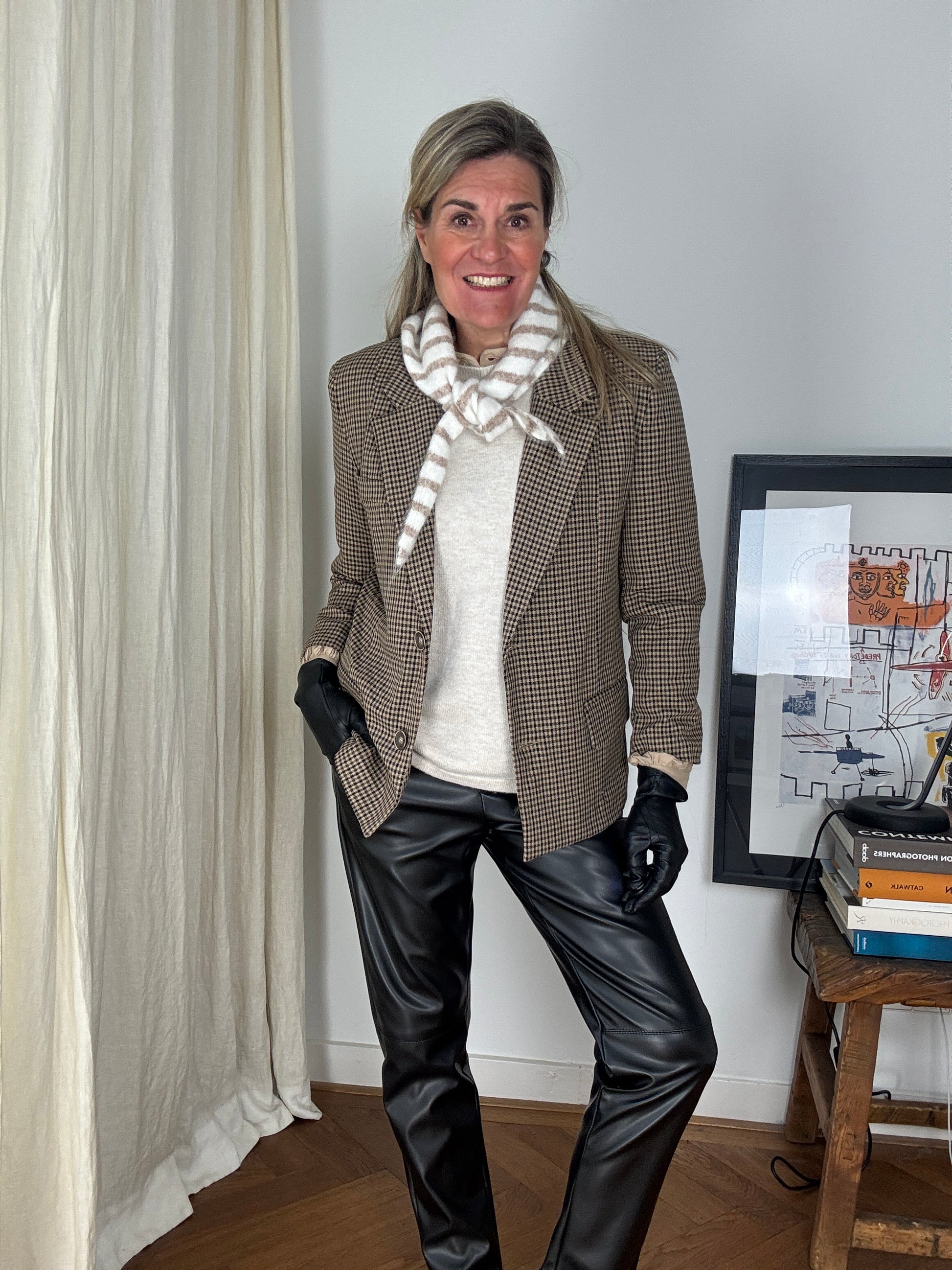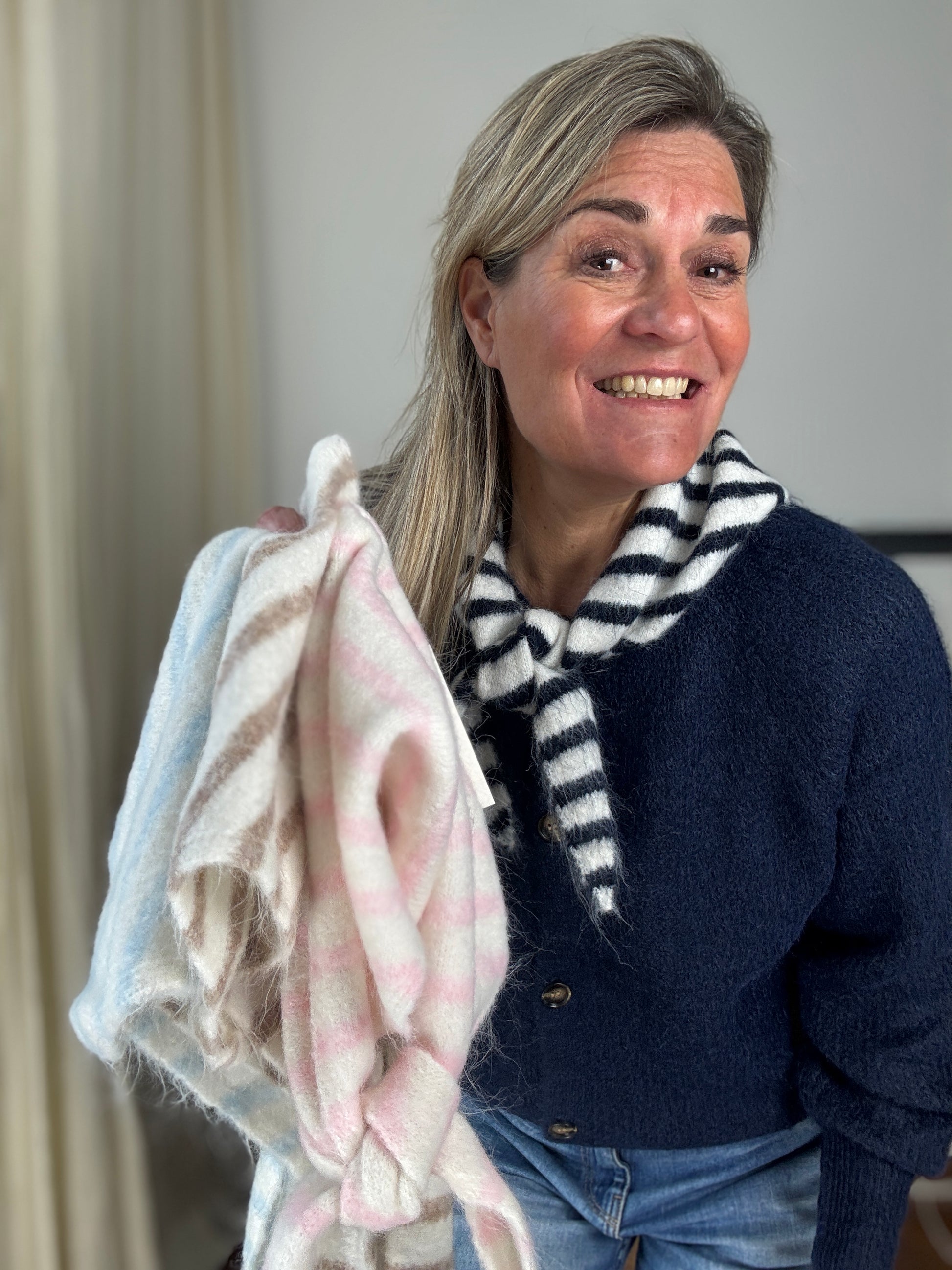 Wat een schattig puntig streep-sjaaltje is dit om je look helemaal compleet te maken!