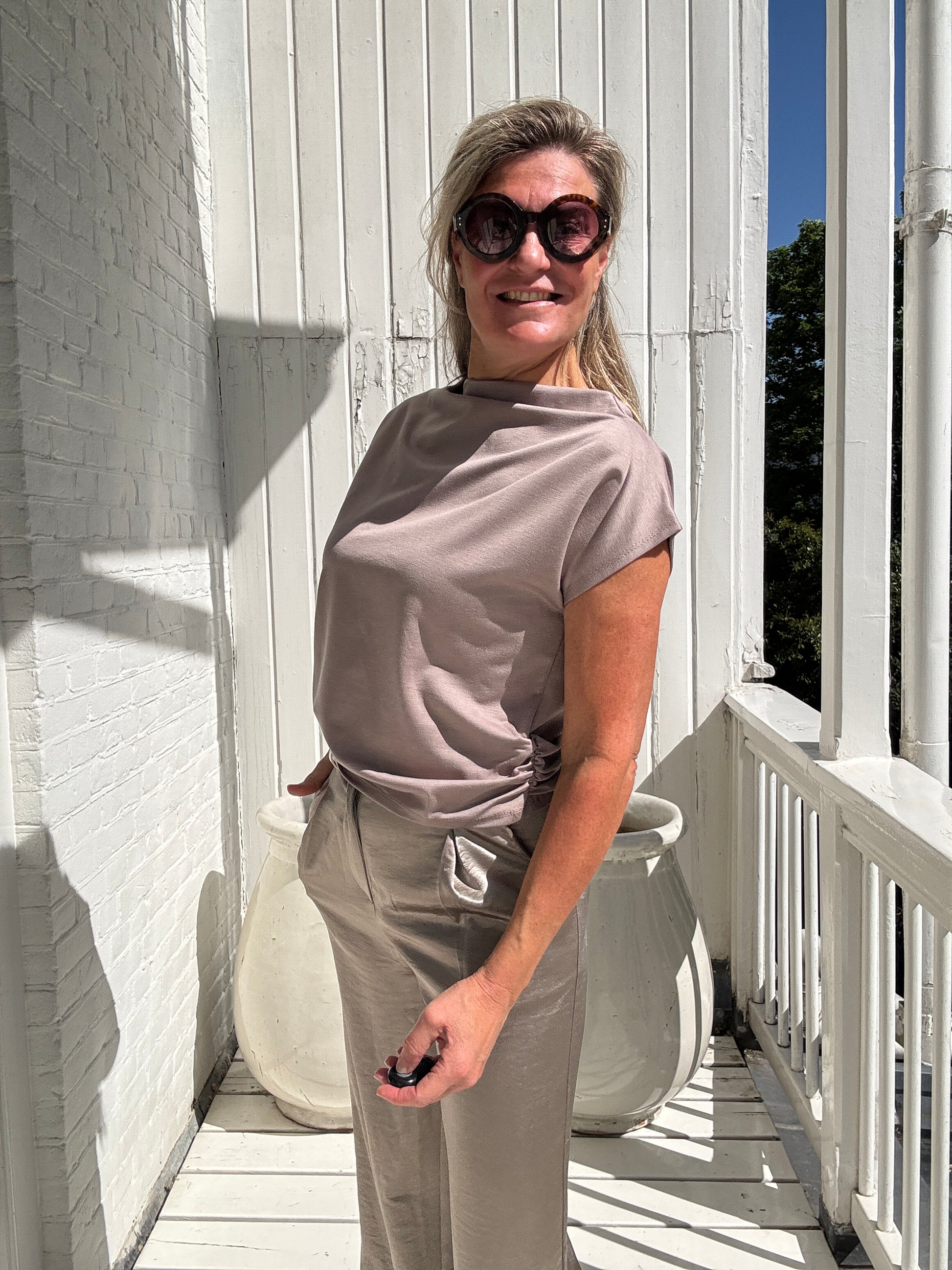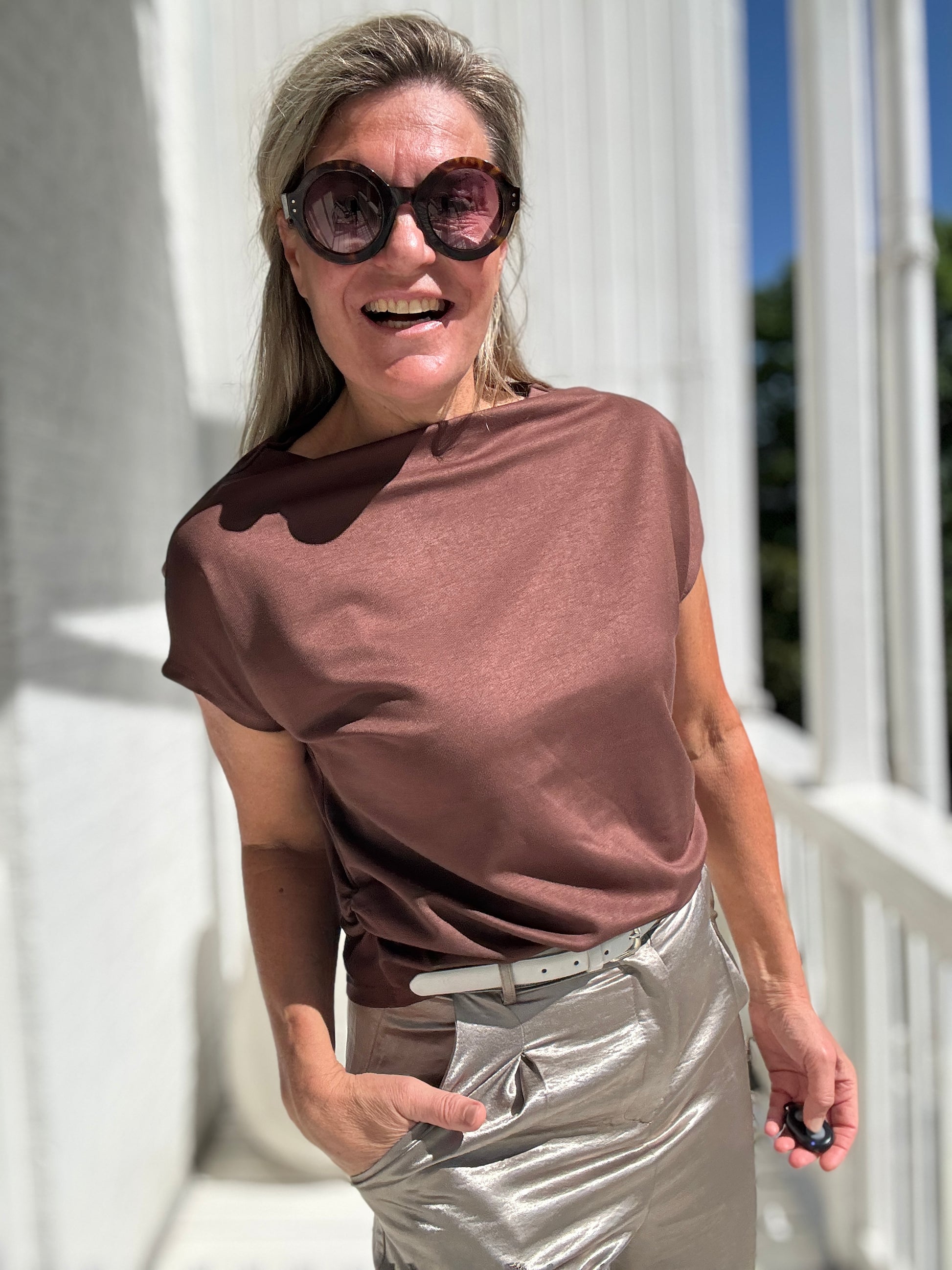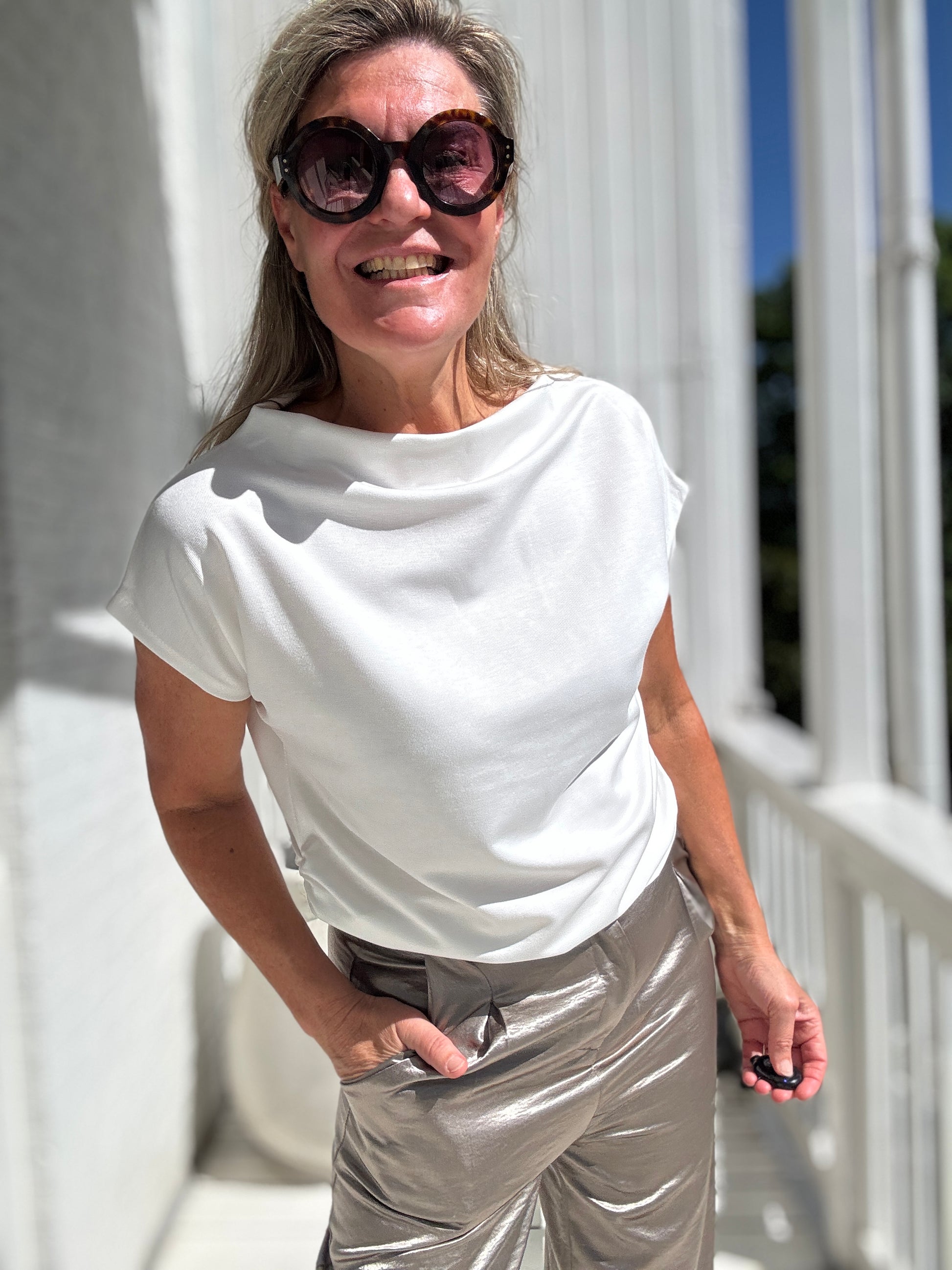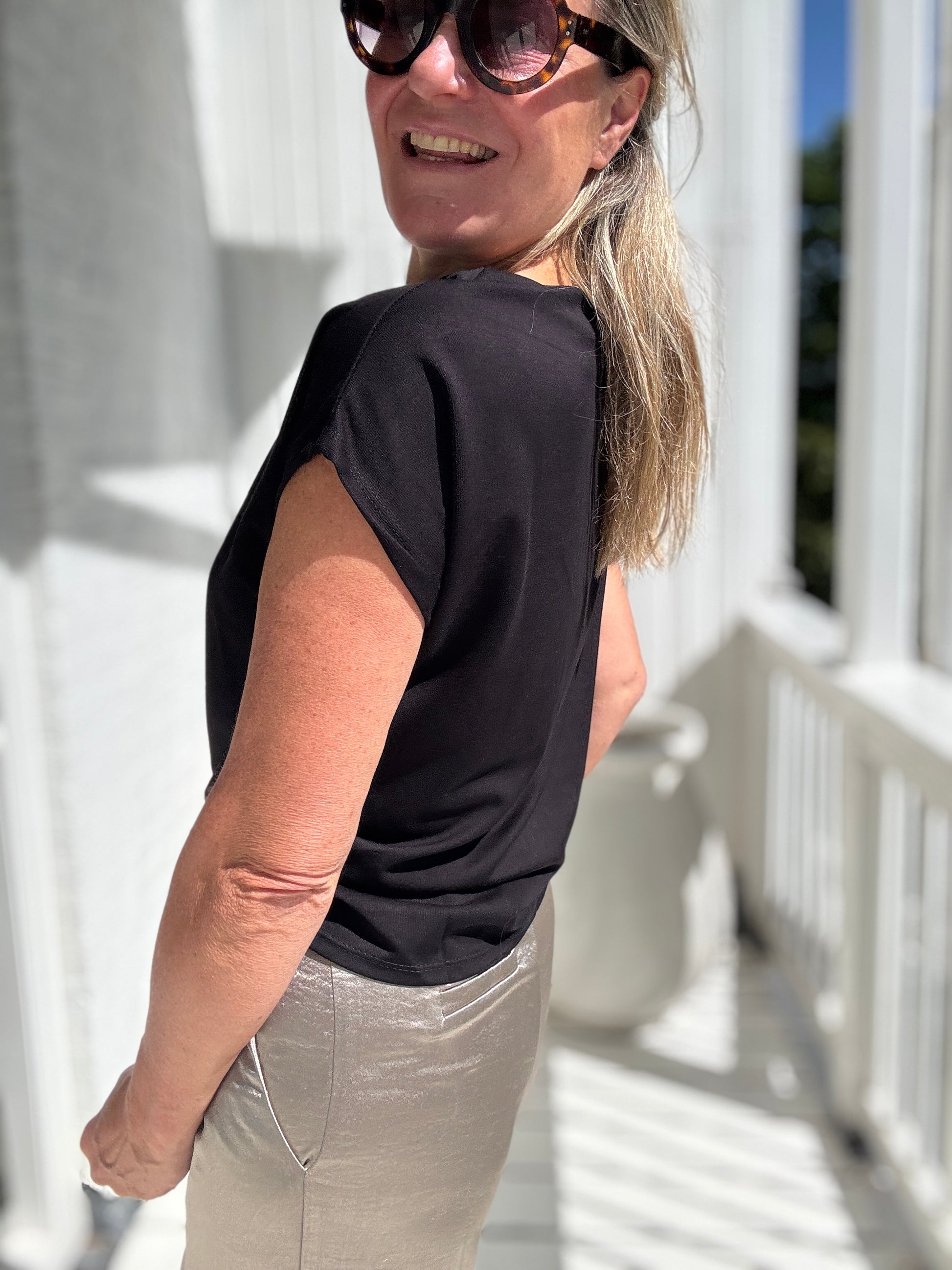 Deze beauty van een top voelt heerlijk zacht aan, valt fantastisch en heeft speelse mouwtjes en halslijn.