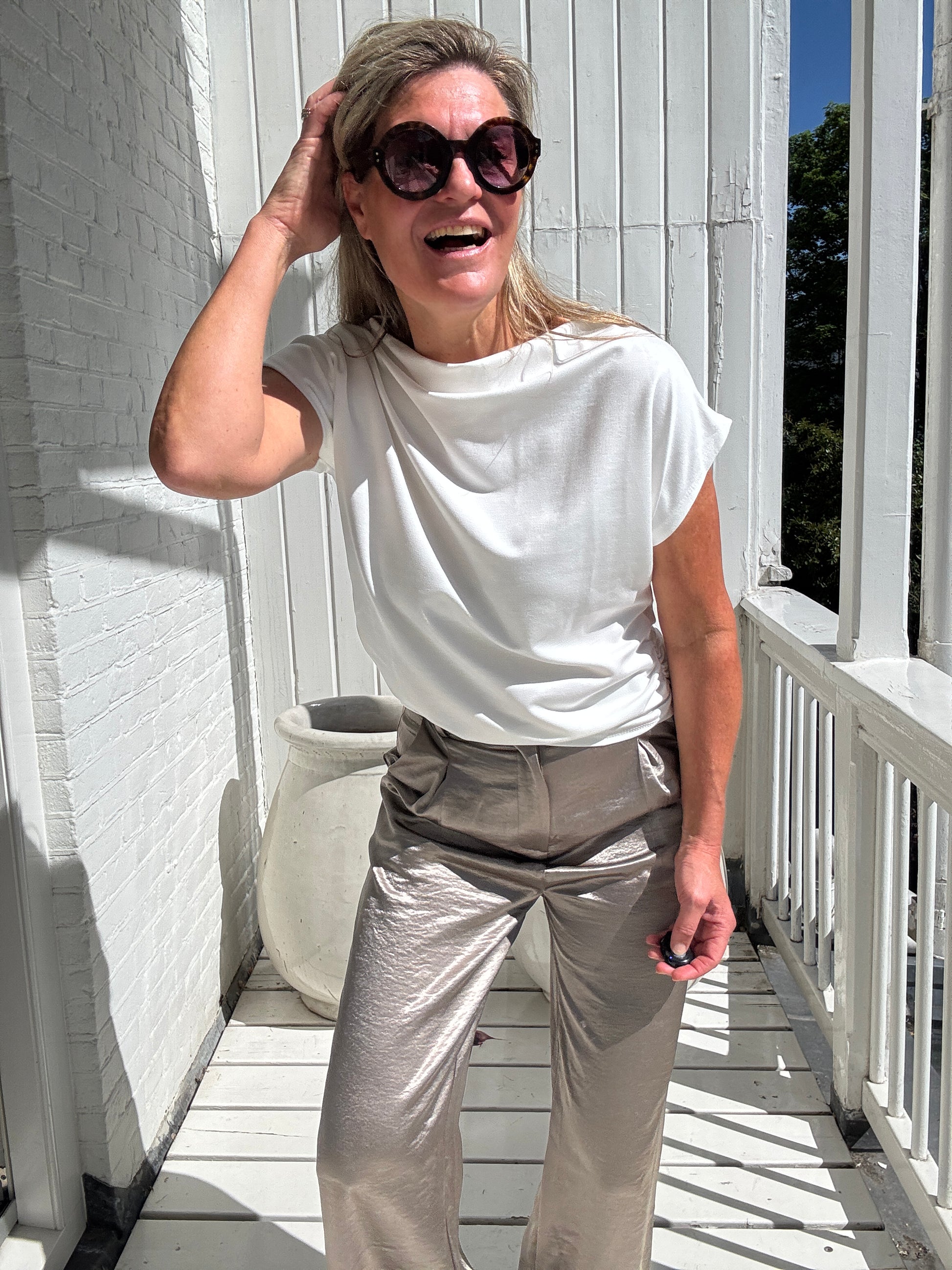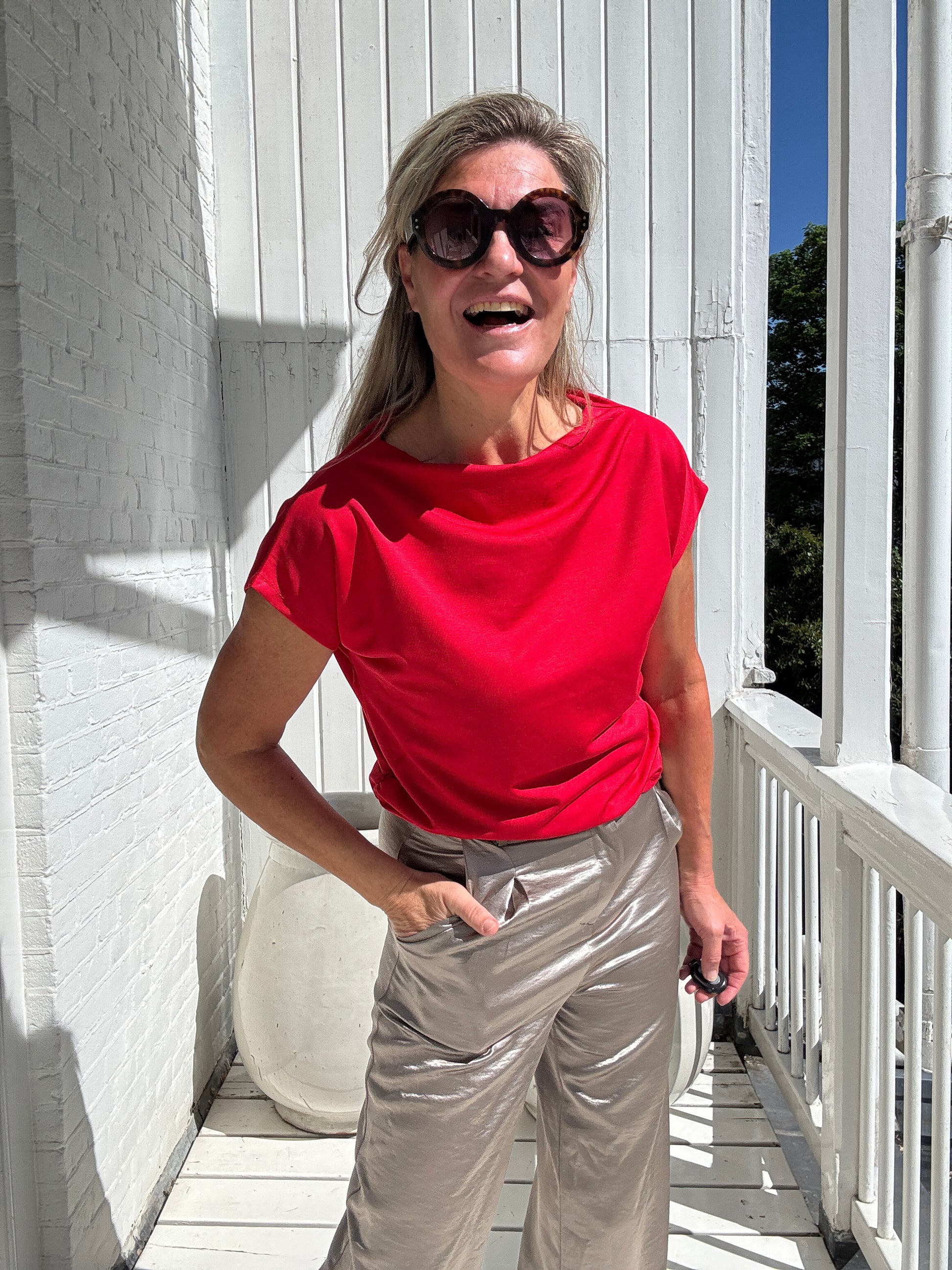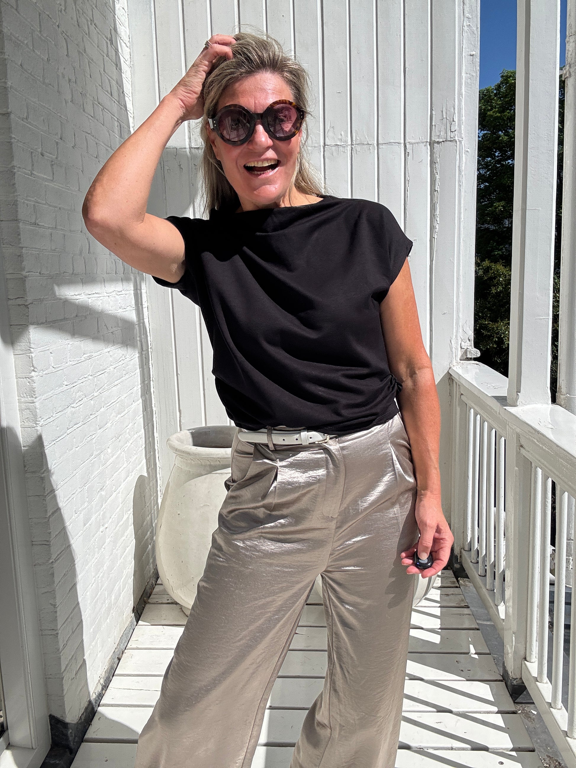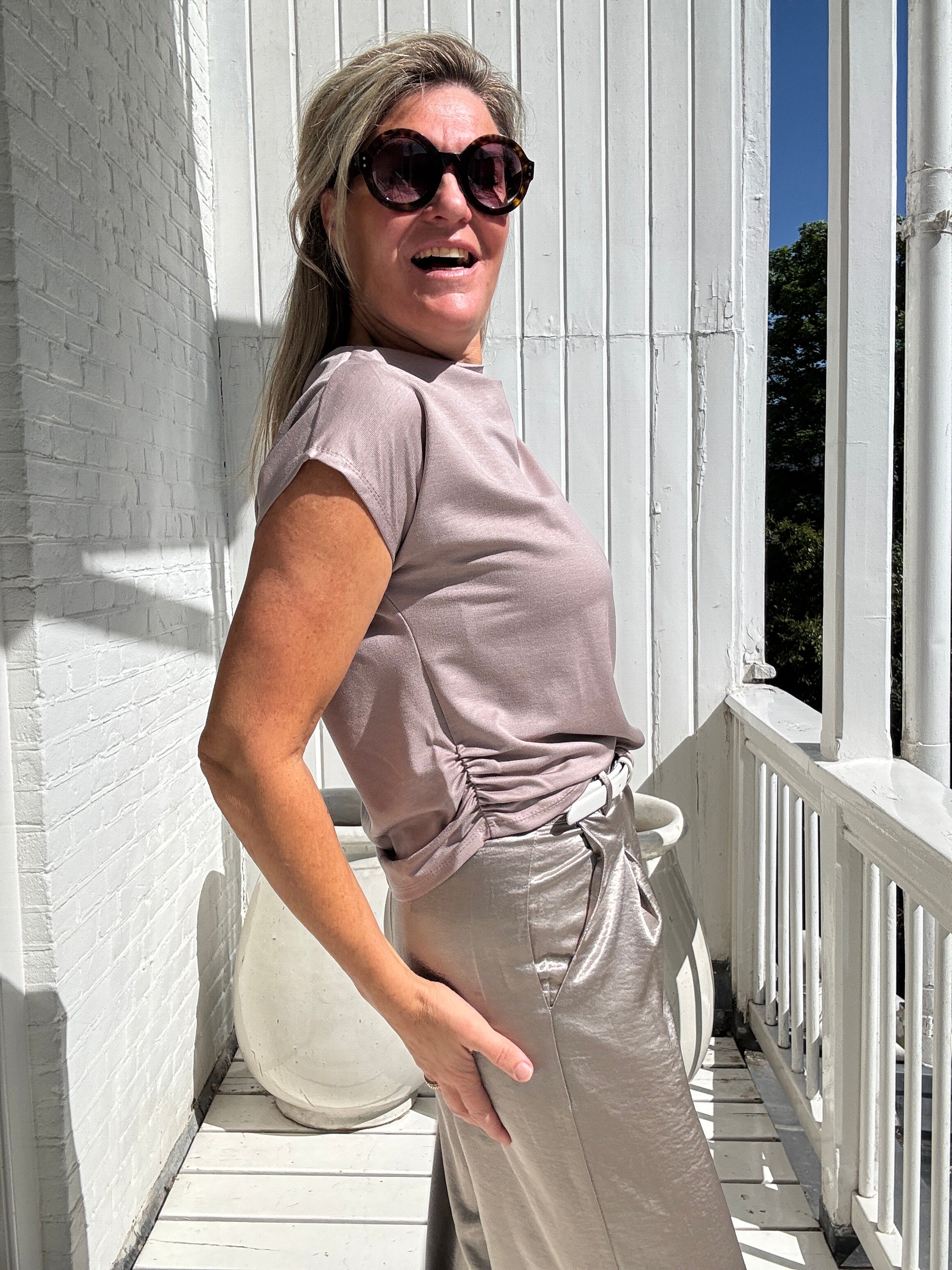 Deze beauty van een top voelt heerlijk zacht aan, valt fantastisch en heeft speelse mouwtjes en halslijn.