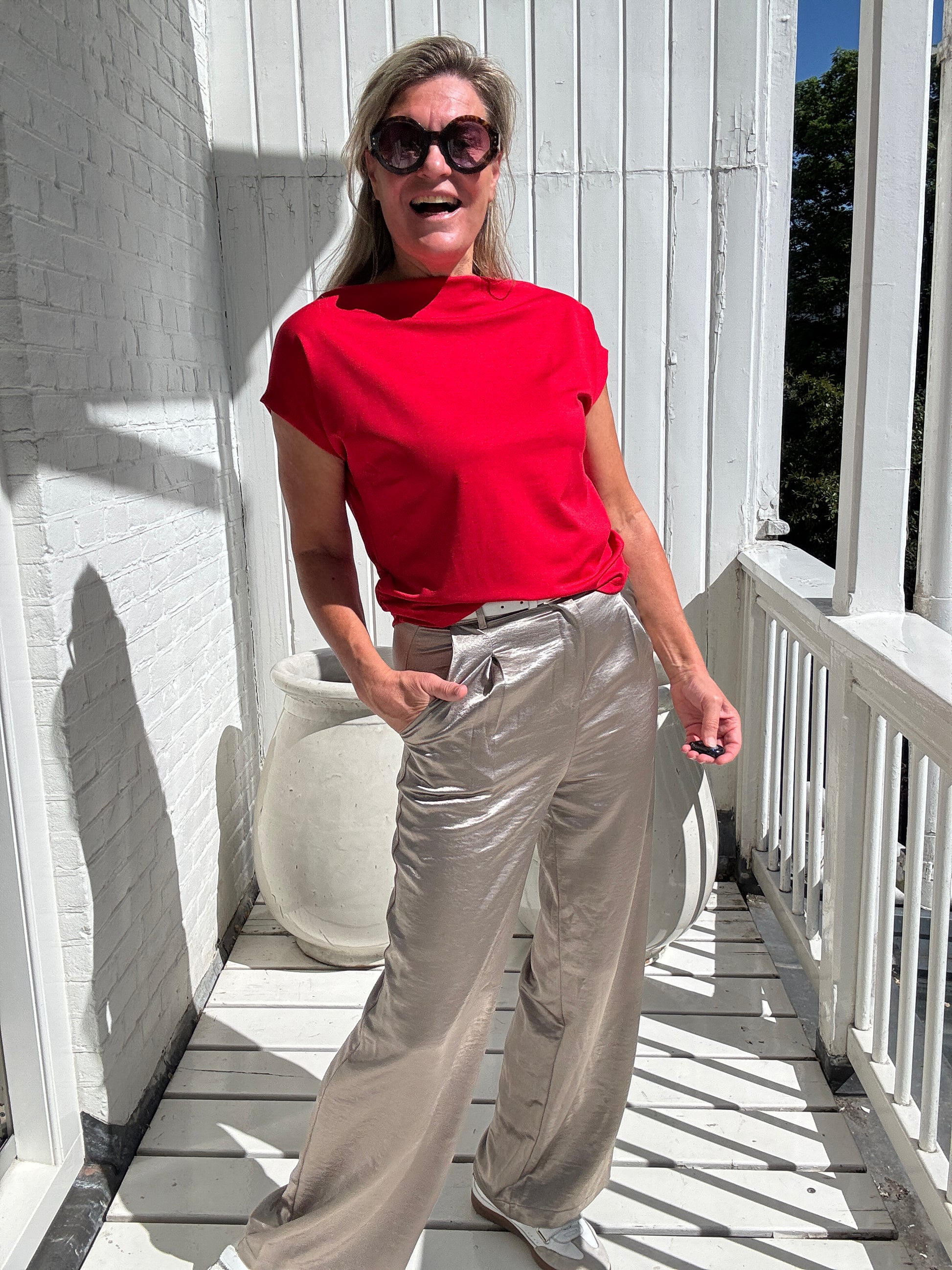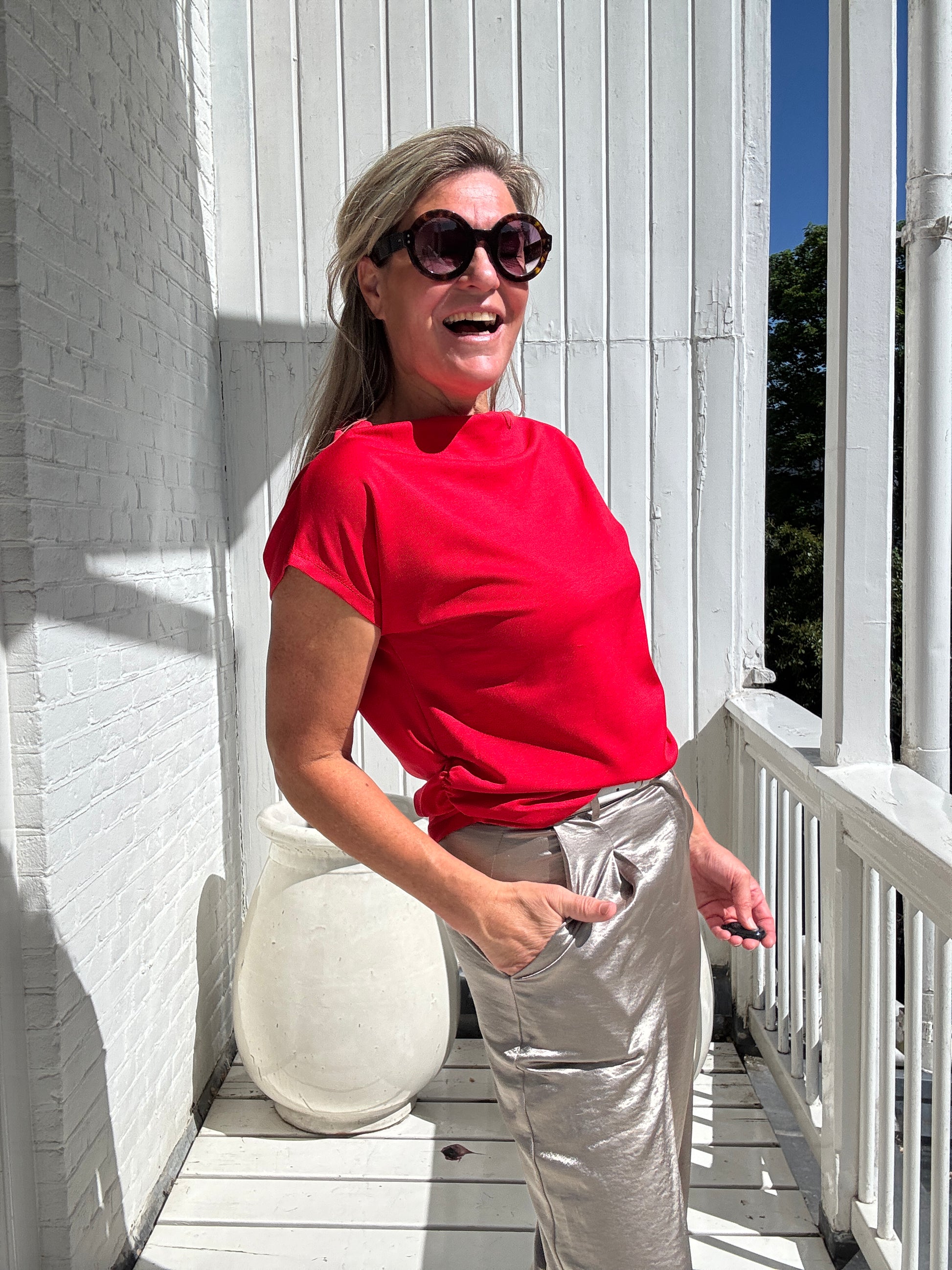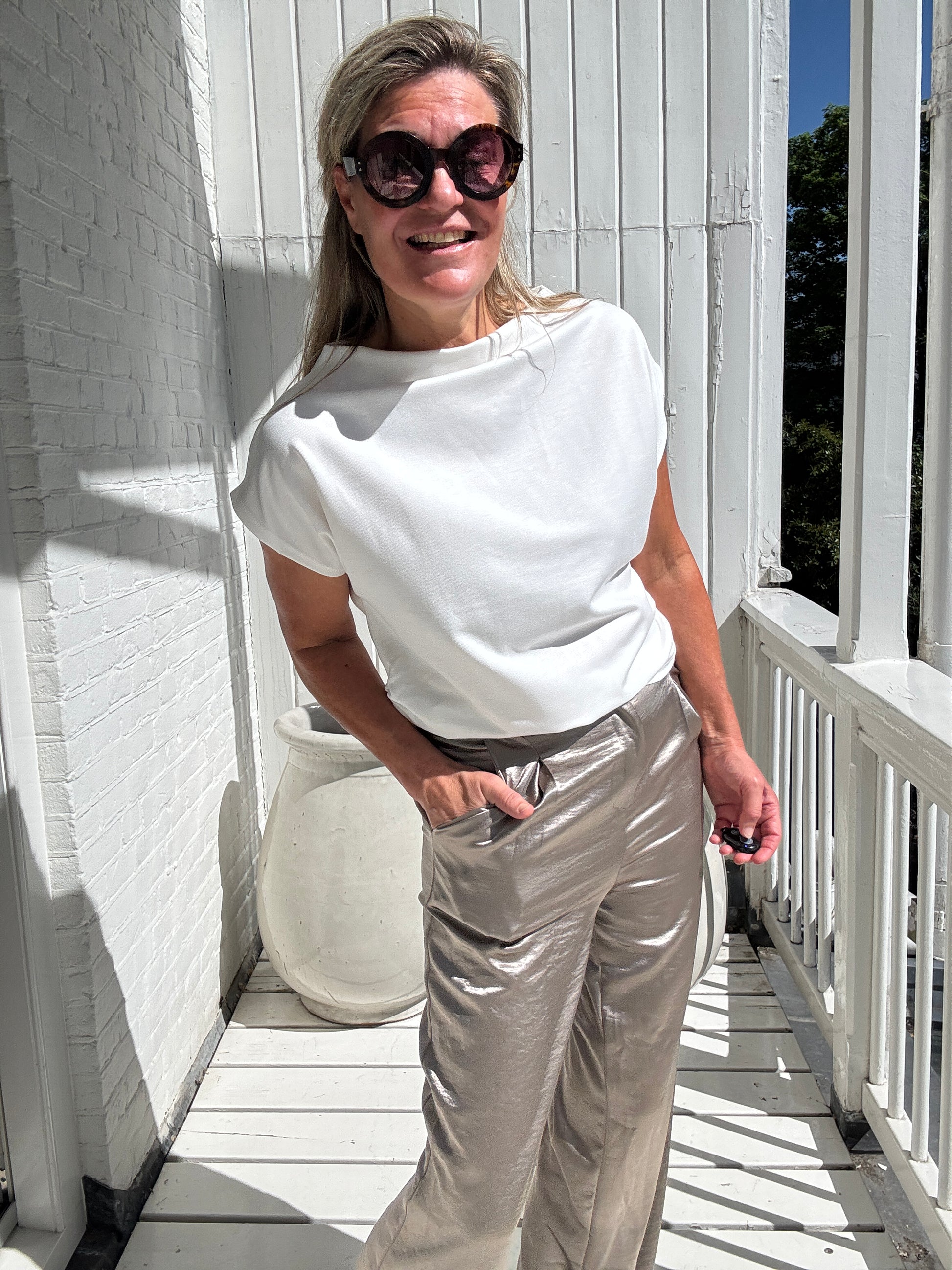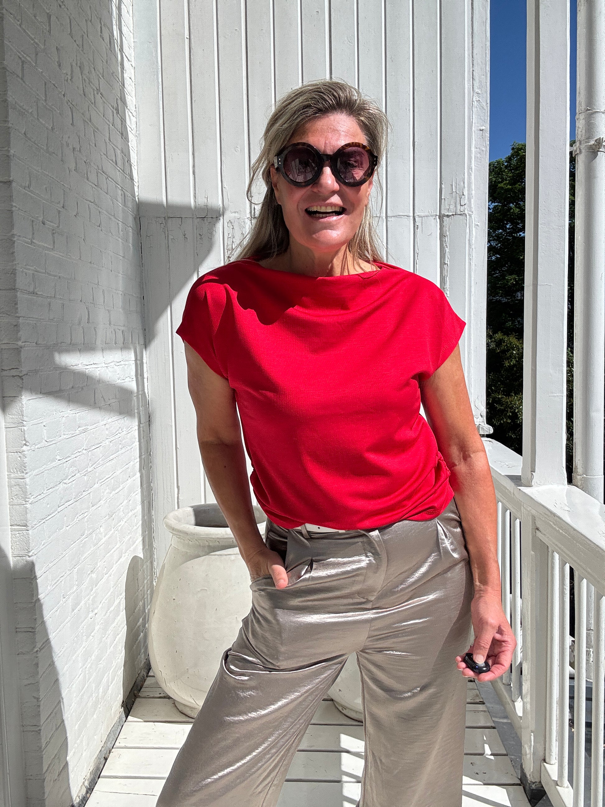 Deze beauty van een top voelt heerlijk zacht aan, valt fantastisch en heeft speelse mouwtjes en halslijn.