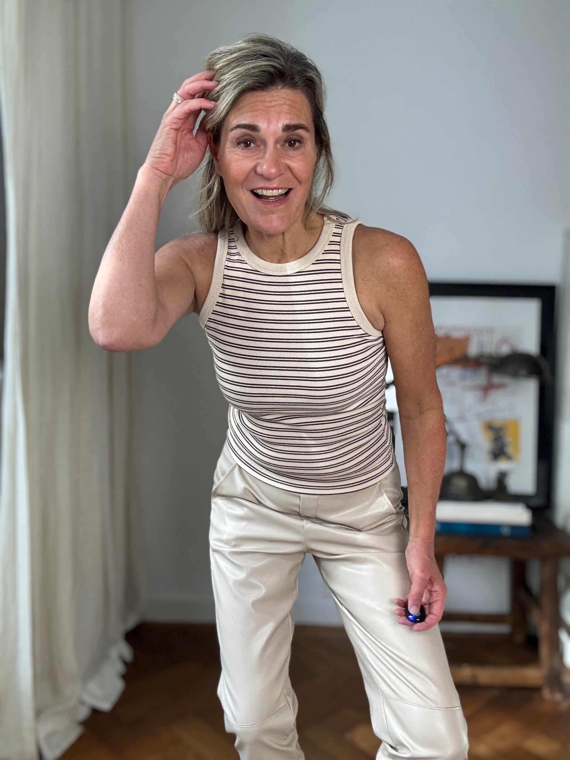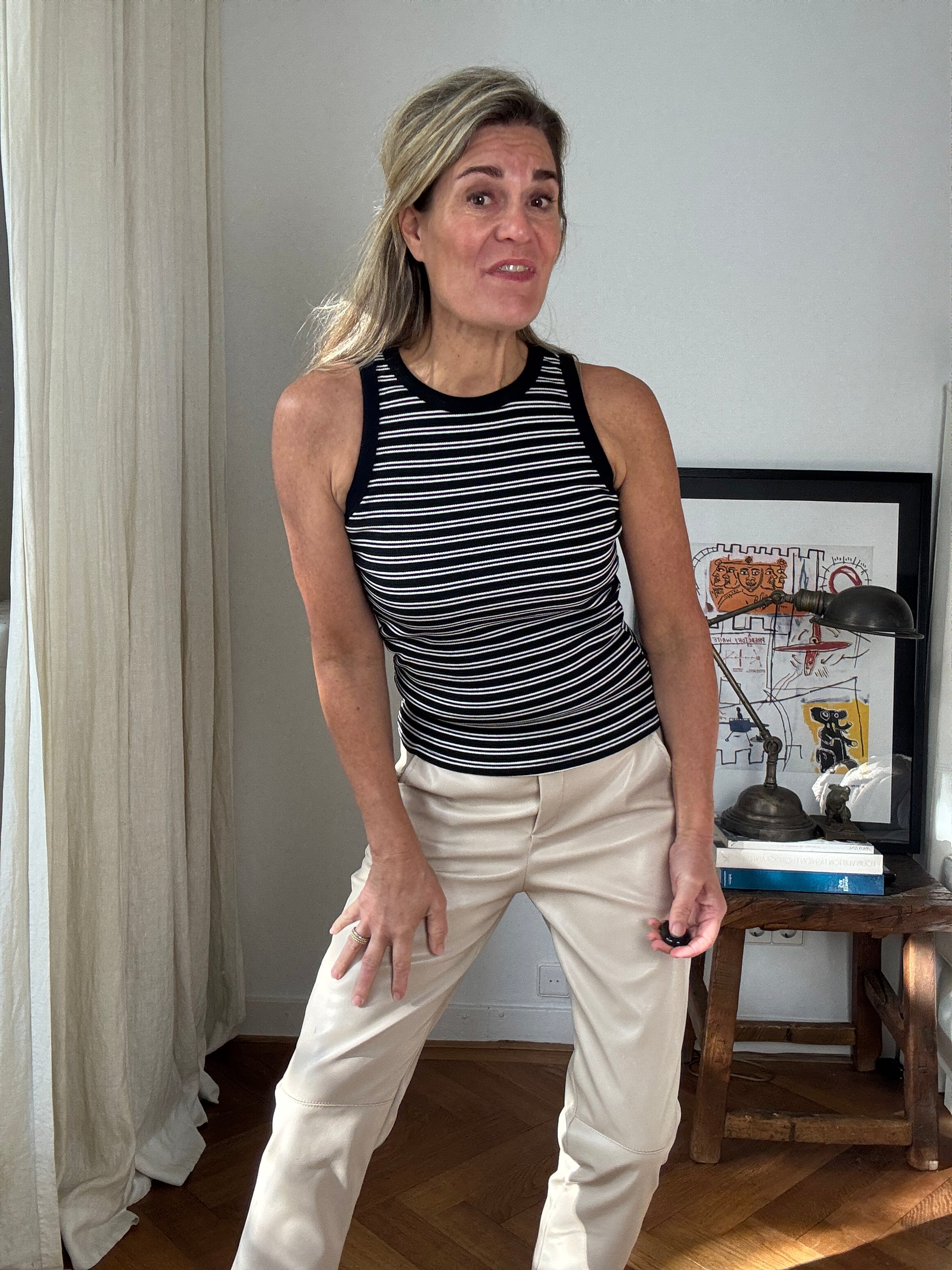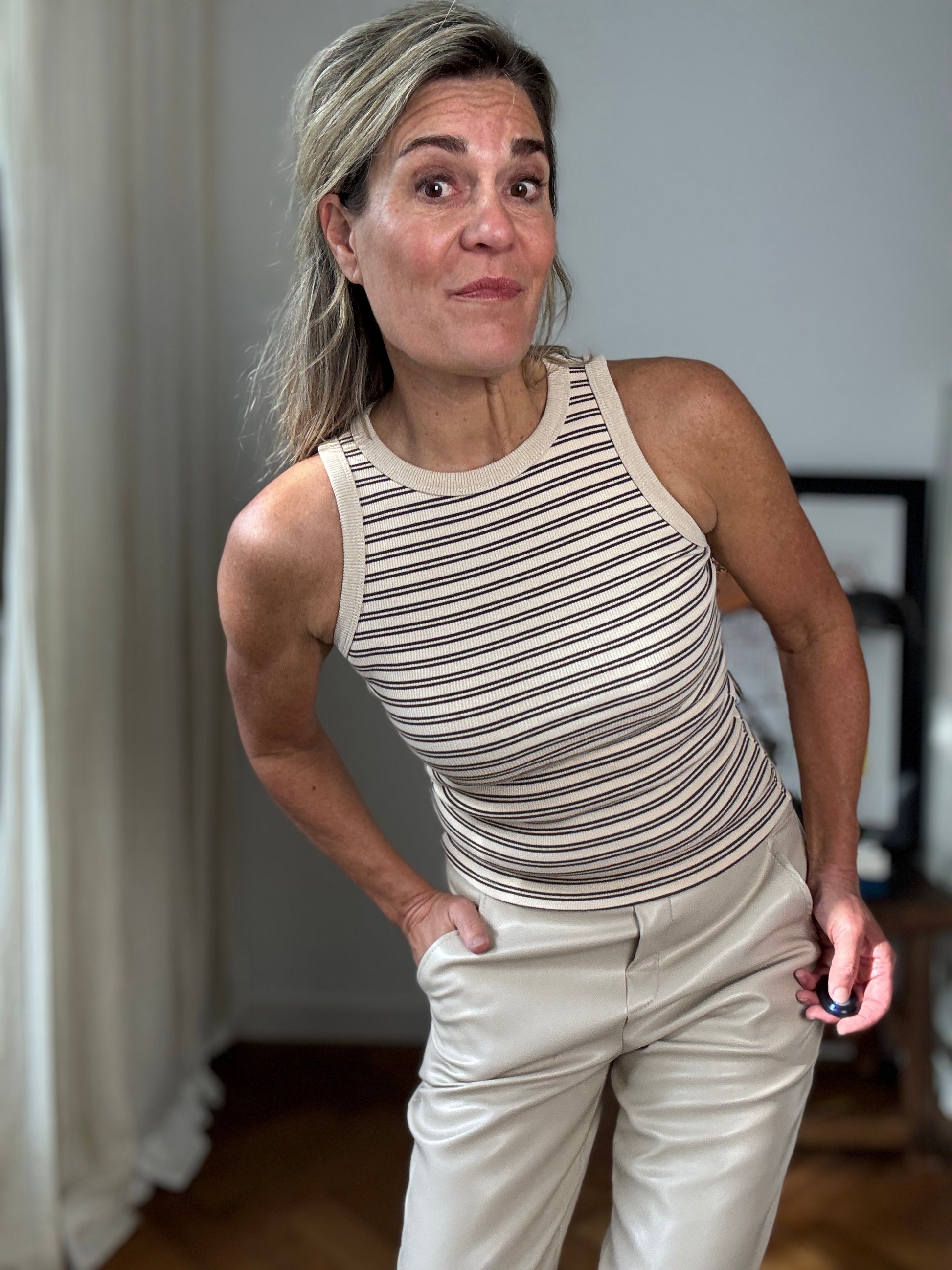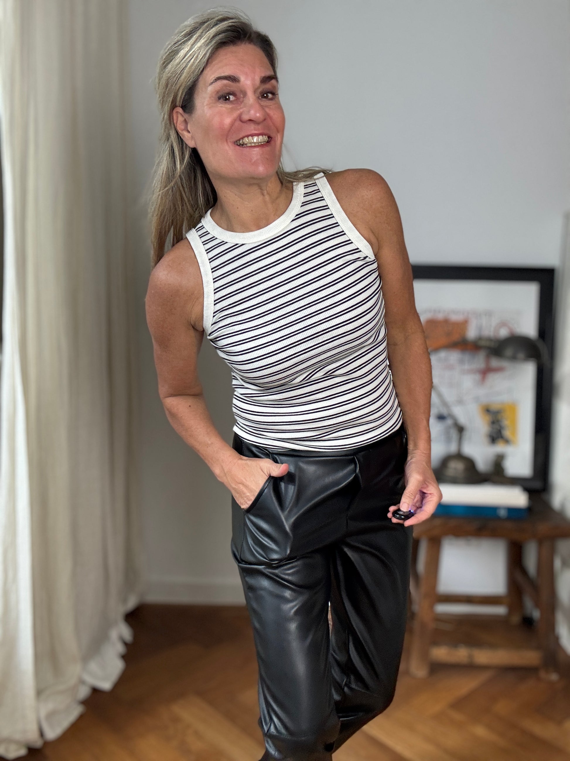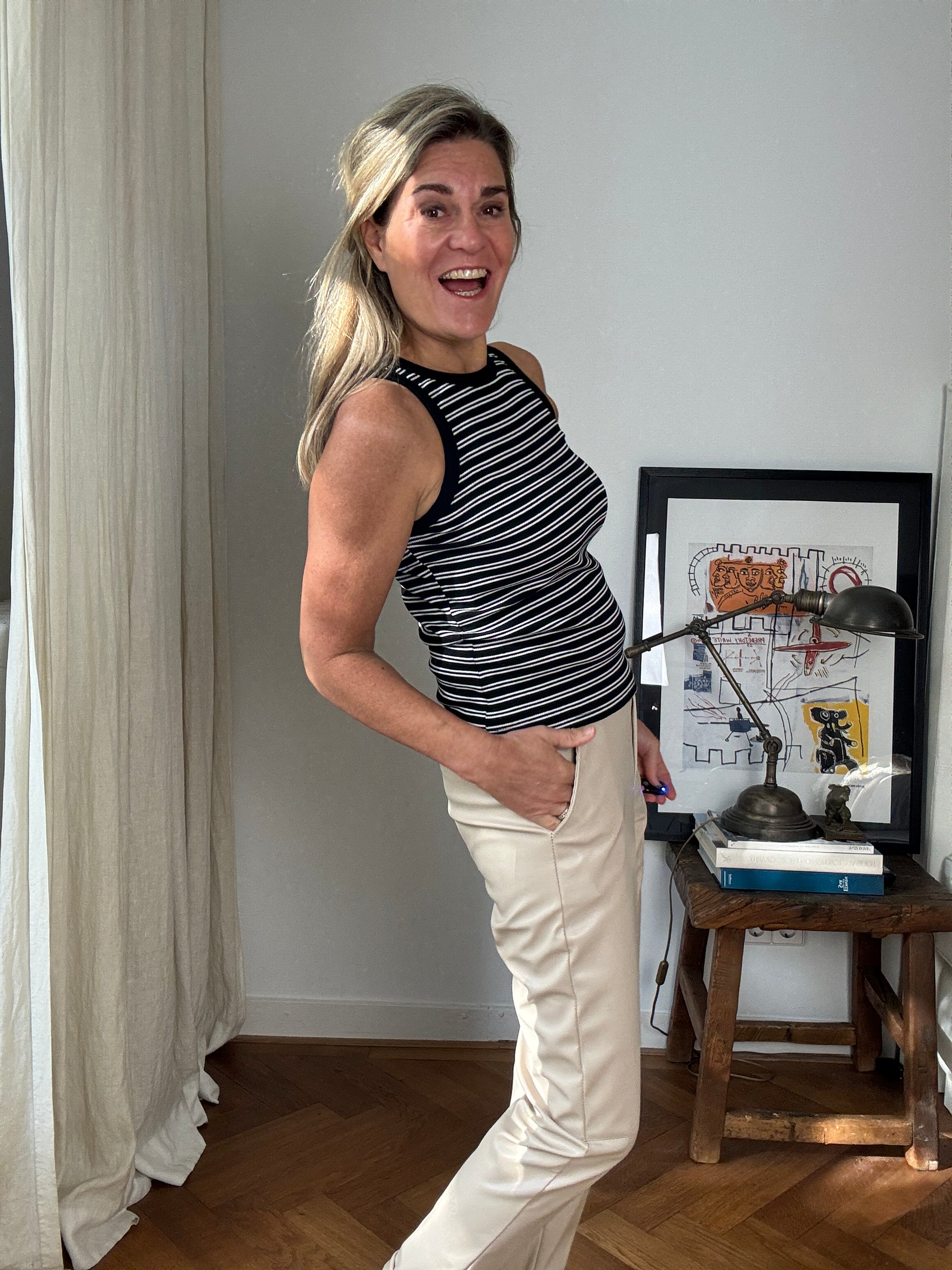 Deze heerlijke basic met leuk streepje mag niet ontbreken in je garderobe. De top is echt overal leuk mee te combineren!