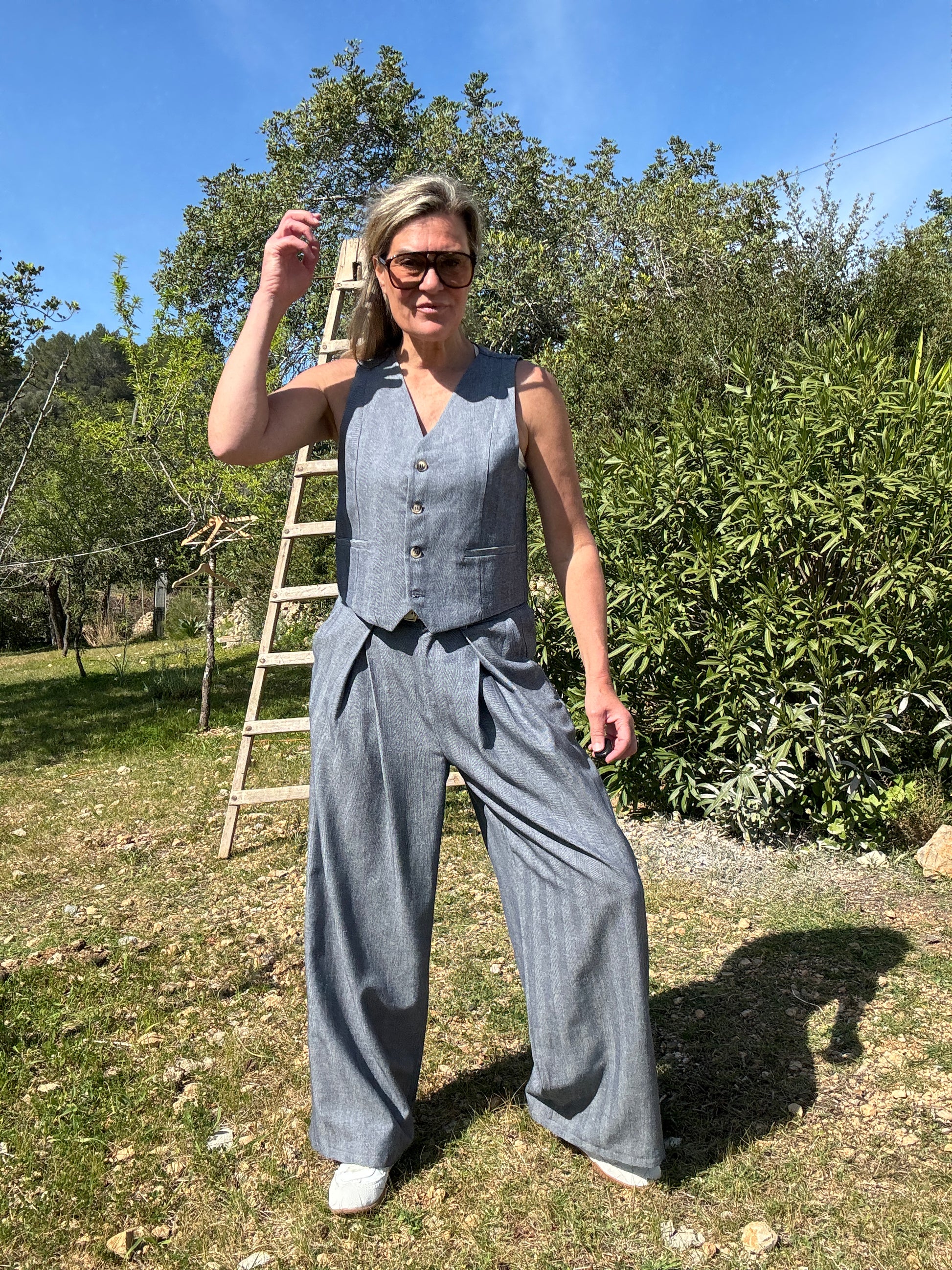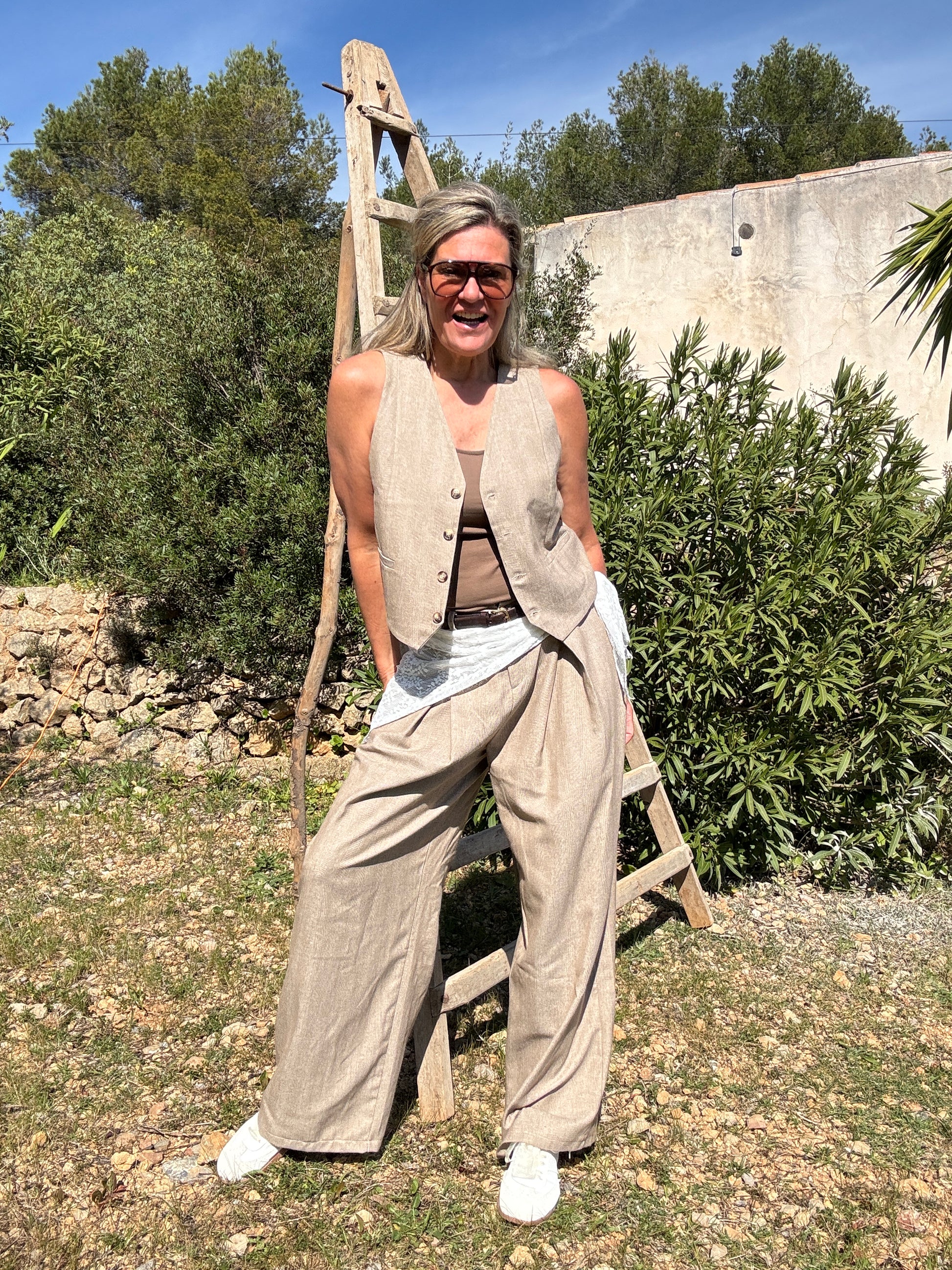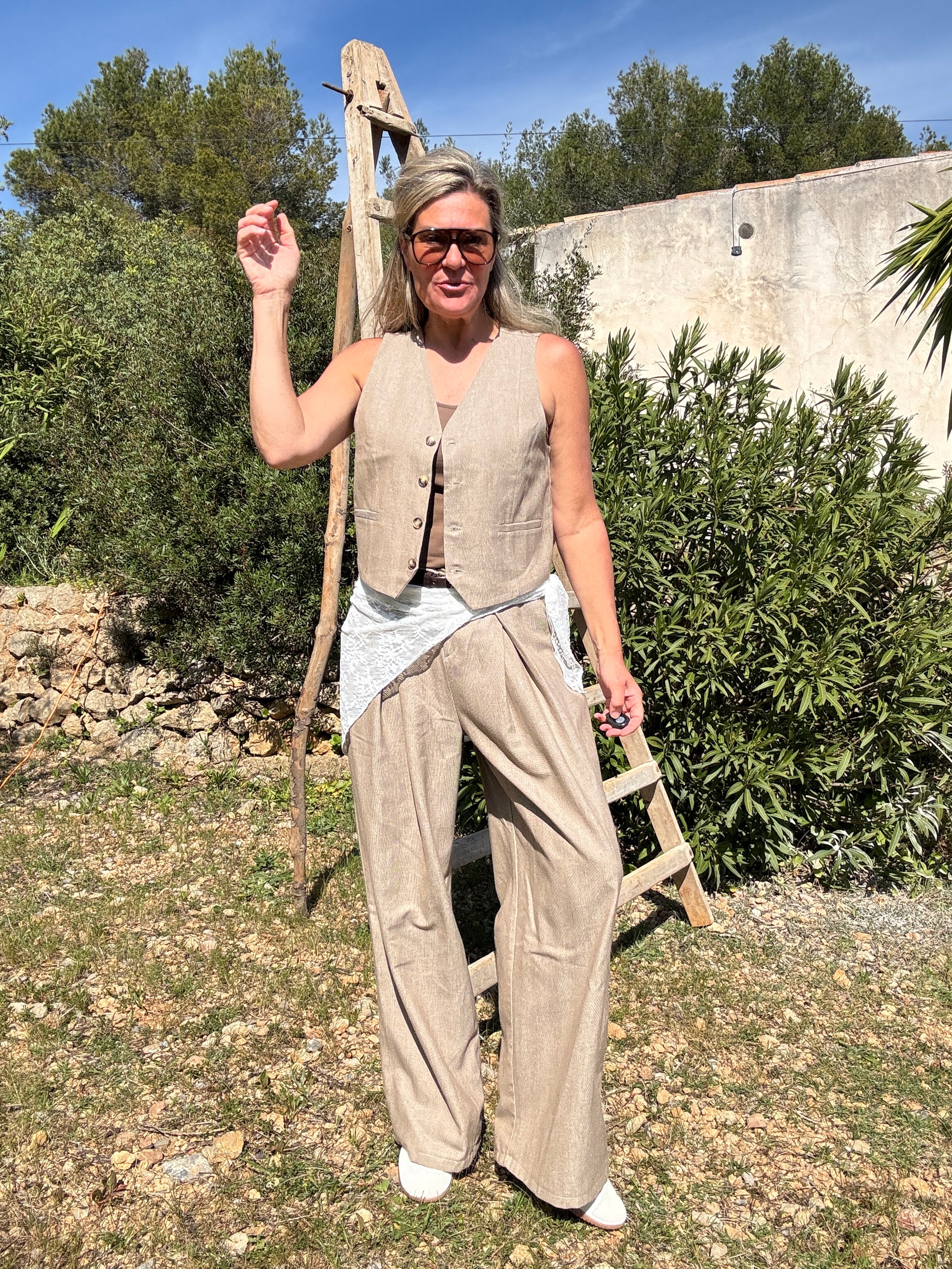 Dit gilet geeft elke outfit direct klasse met haar subtiele visgraat structuur. Combineer het gilet met een blouse en broek Benny voor een te gekke look.