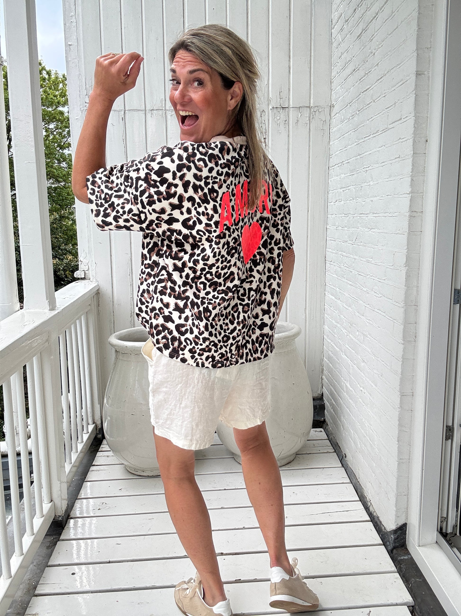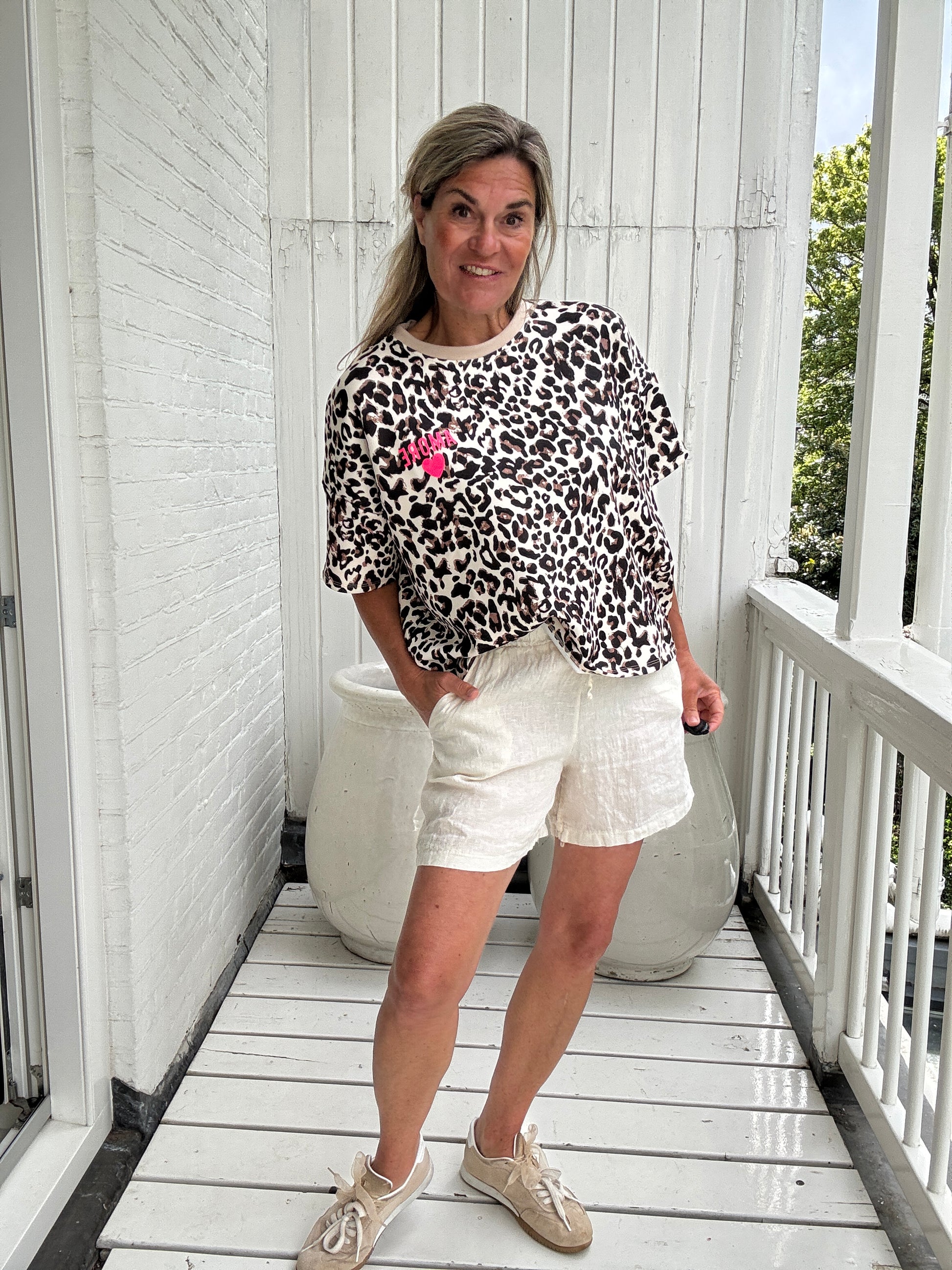 Deze superzachte sweater met korte mouw van scuba kwaliteit is alleen maar amour met de leuke tekst en hartje op de achterkant!