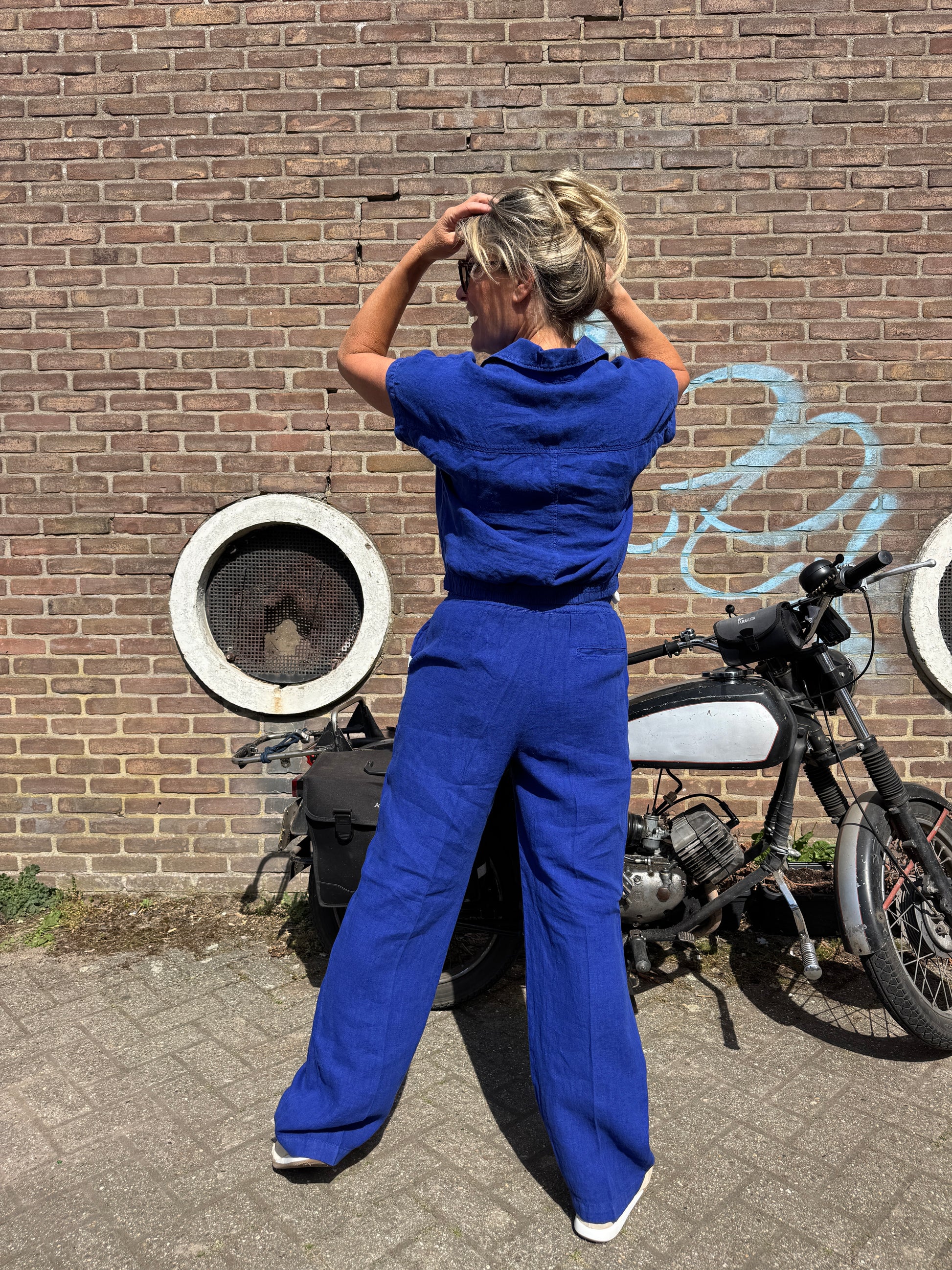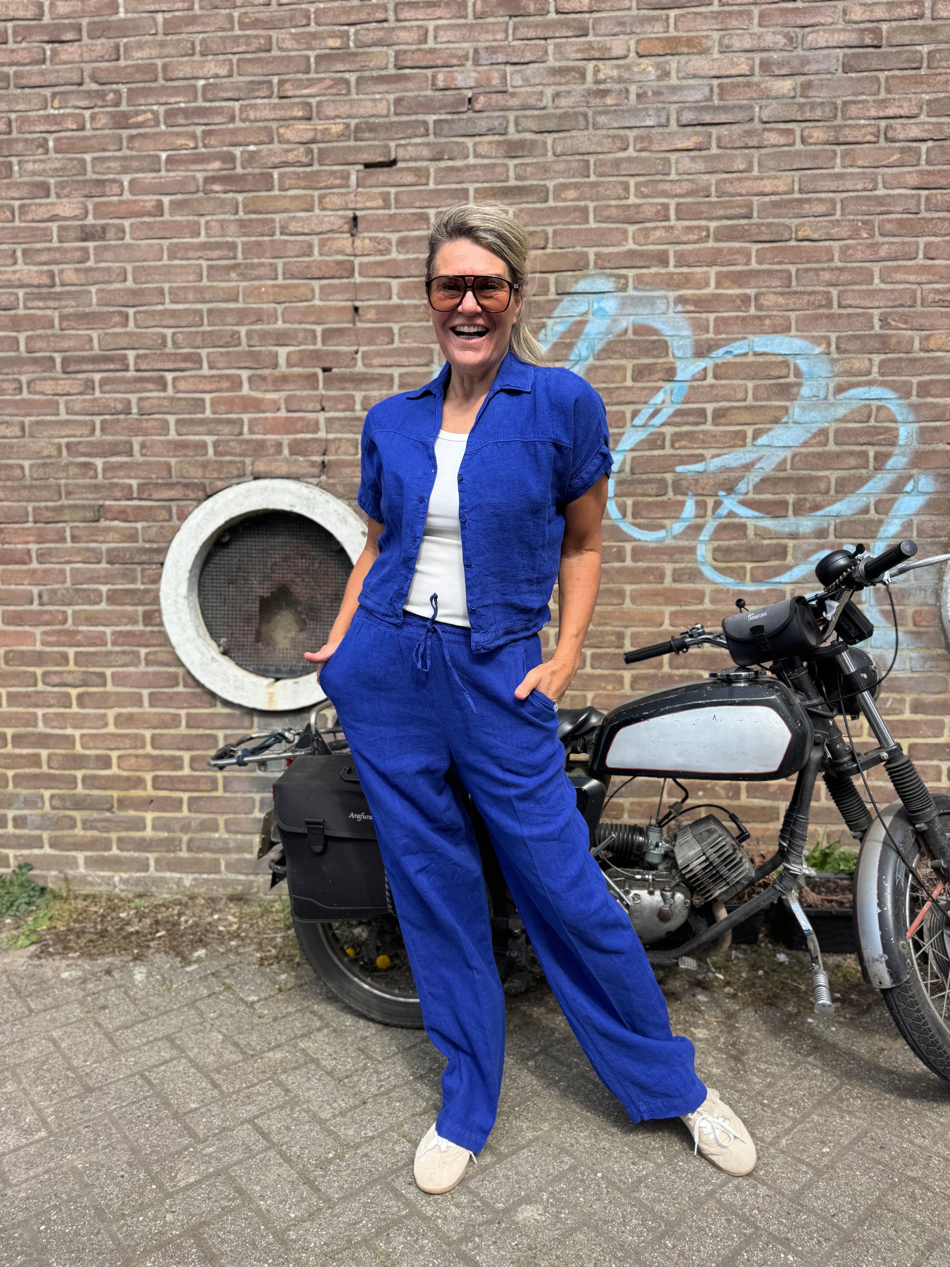 Heerlijke linnen broek van Penn&Ink in die mooie cobalt blauwe kleur. De broek is in de taille strakker te maken d.m.v. een touwtje.