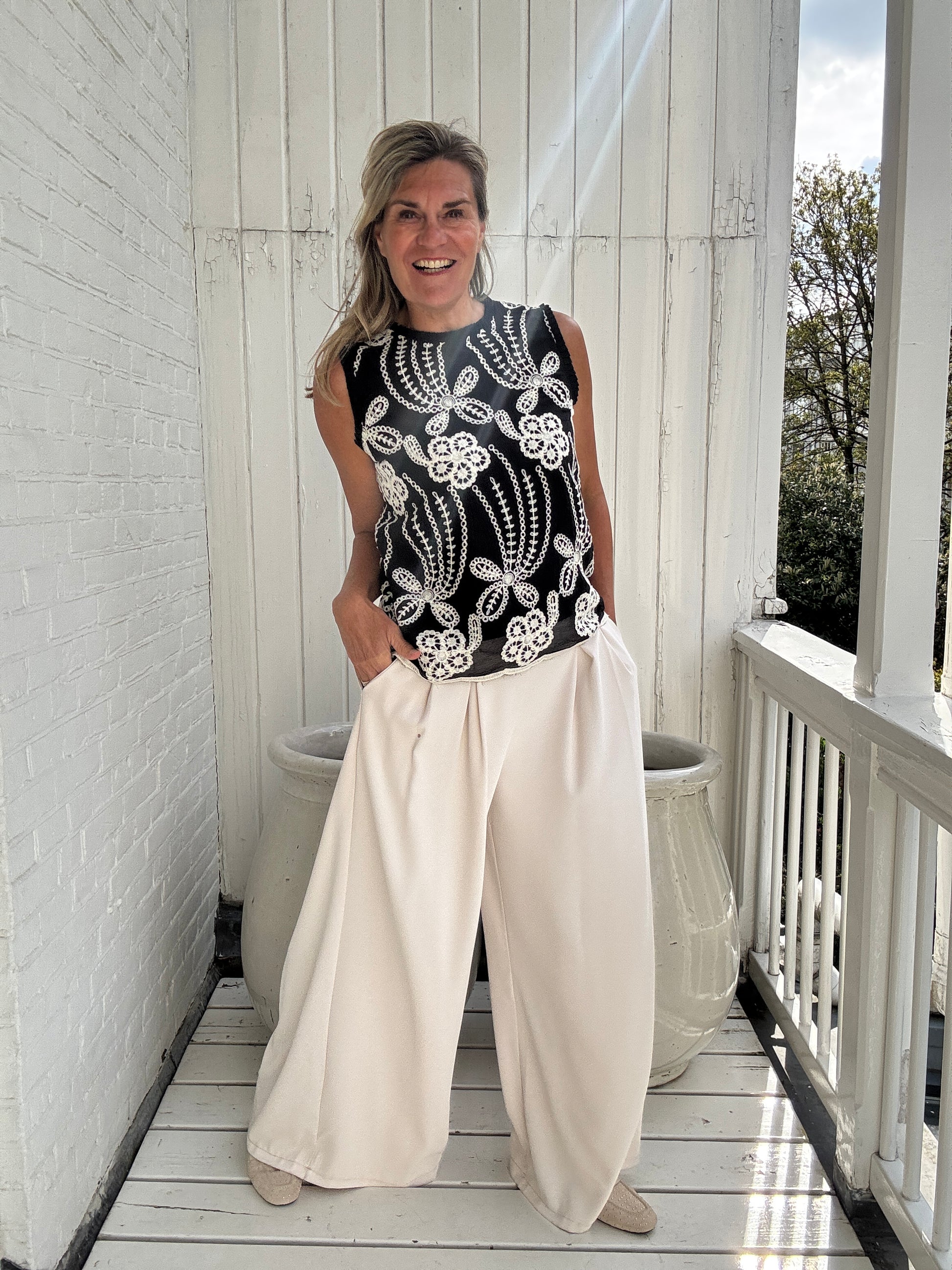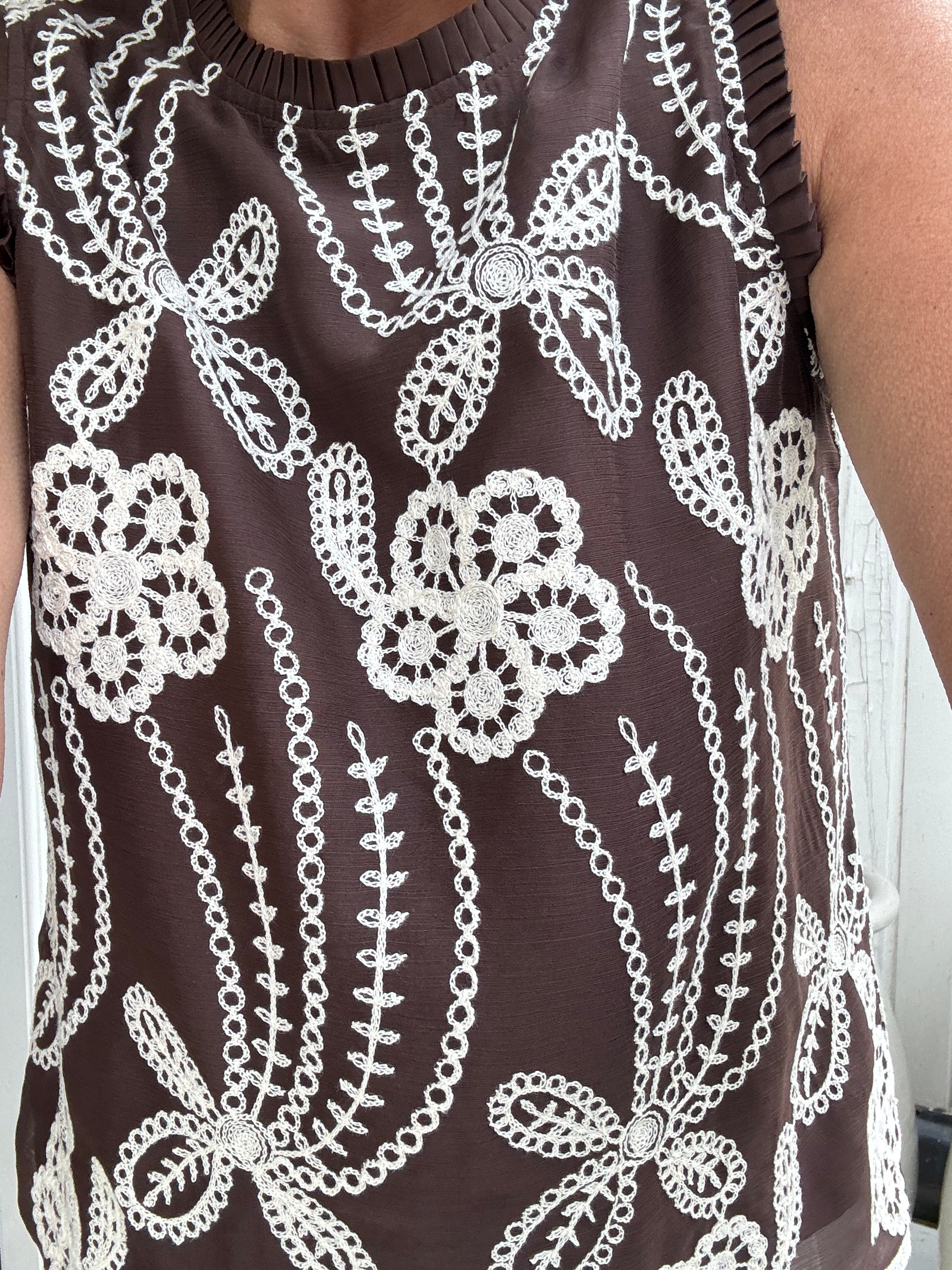 In deze met luxe borduurwerk bewerkte mouwloze top maak je een statement van jewelste.