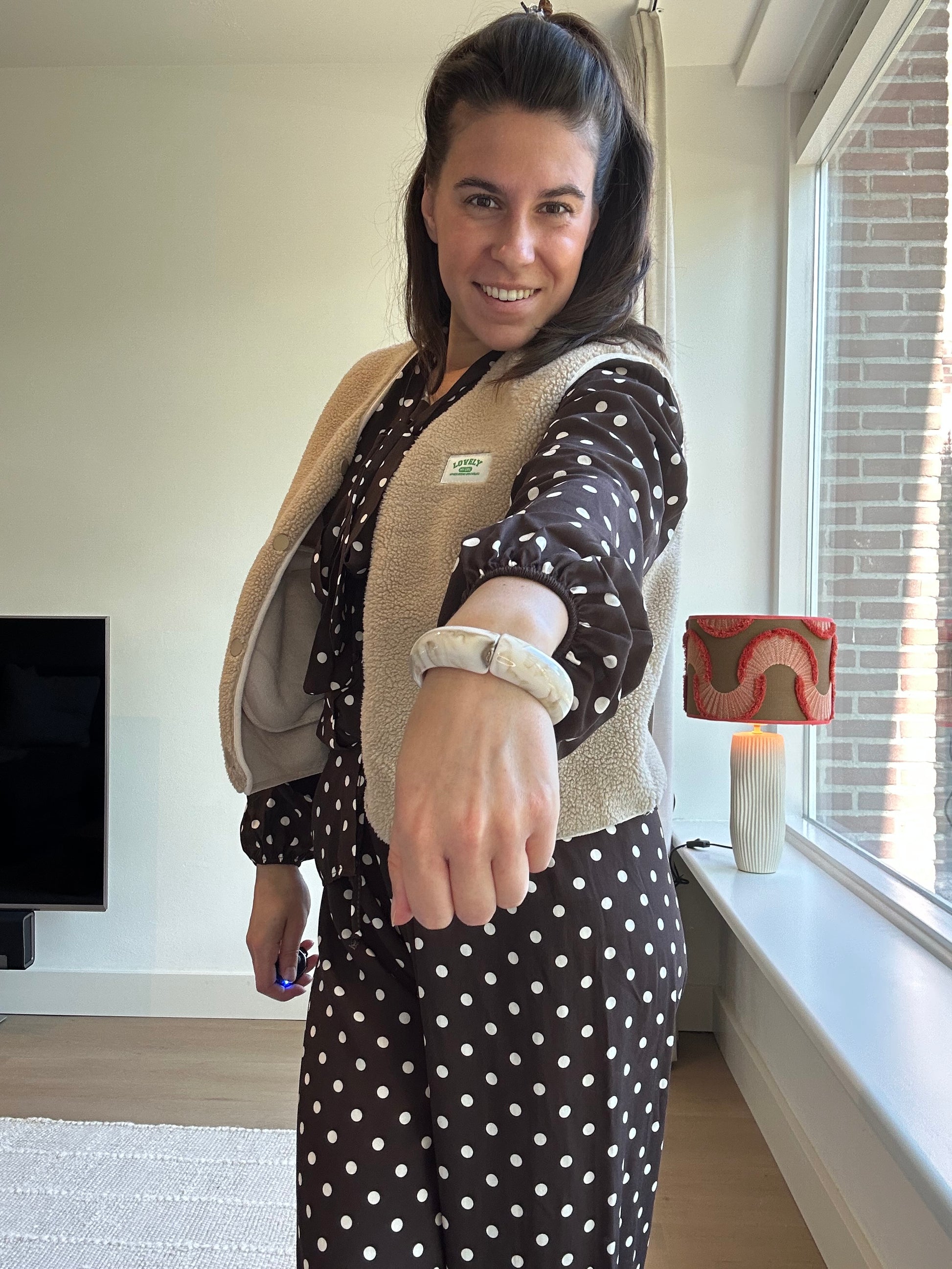 De mooie brede armband is te gek om los te dragen of te combineren met een ander armbandje!