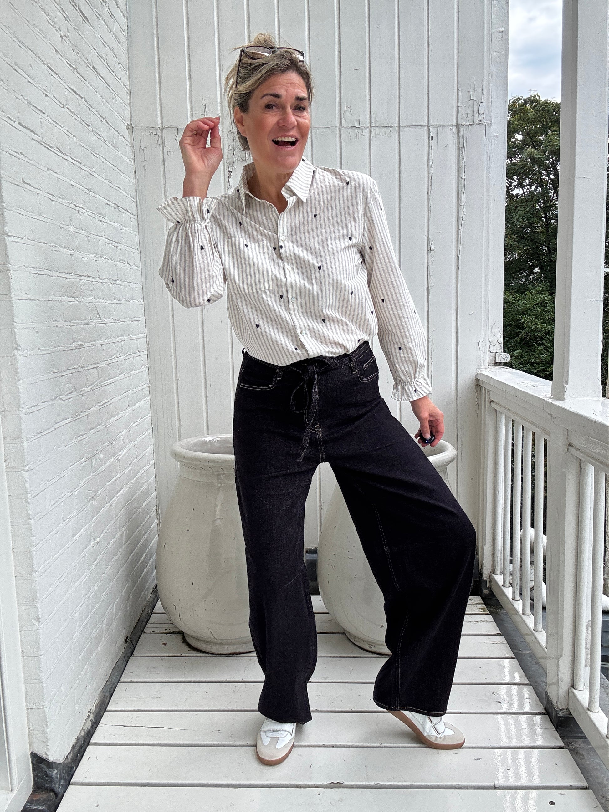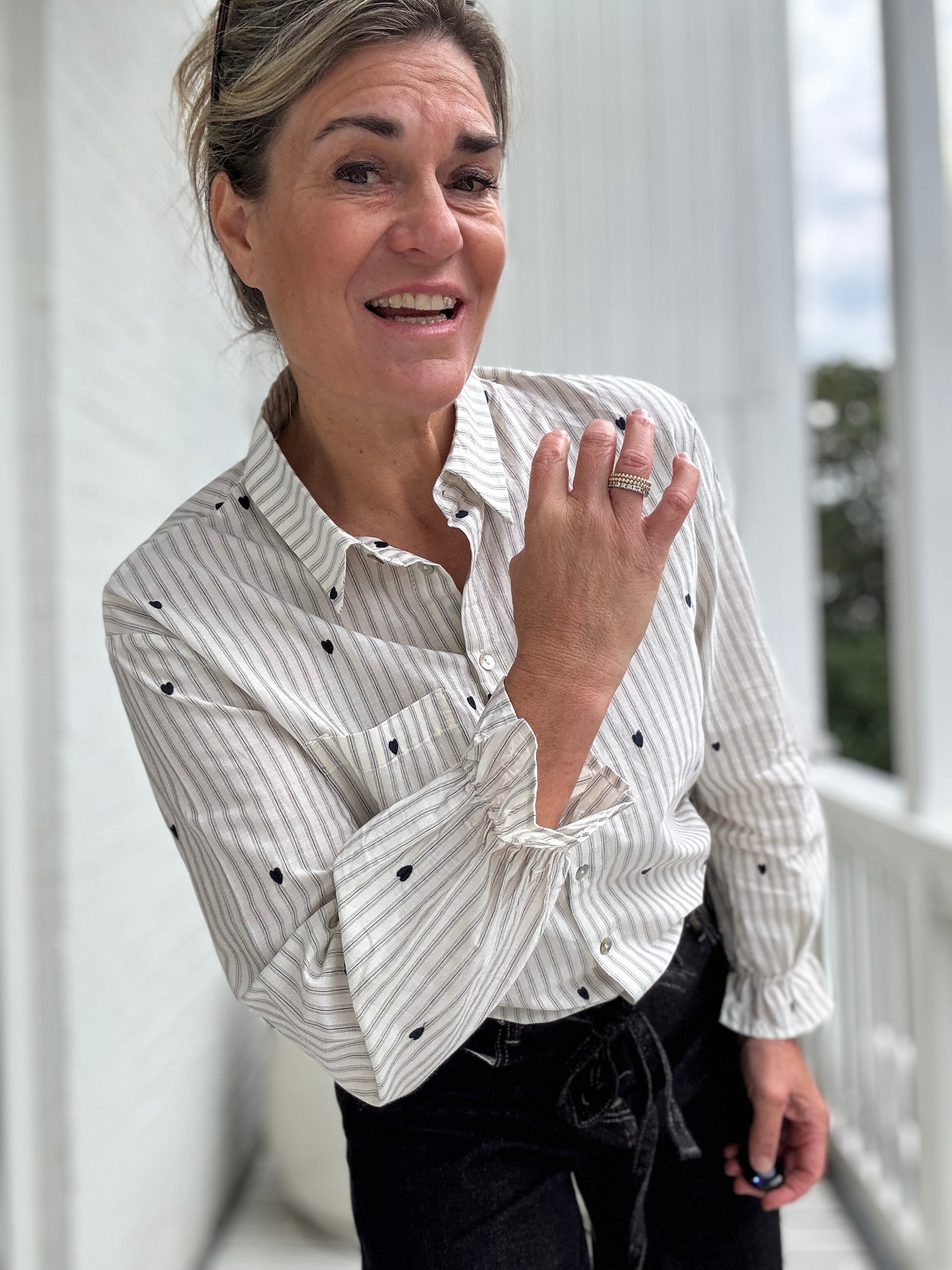 Dit blousje heeft een mooi streepje met een vleugje liefde door het lieve hartje. Onweerstaanbaar!