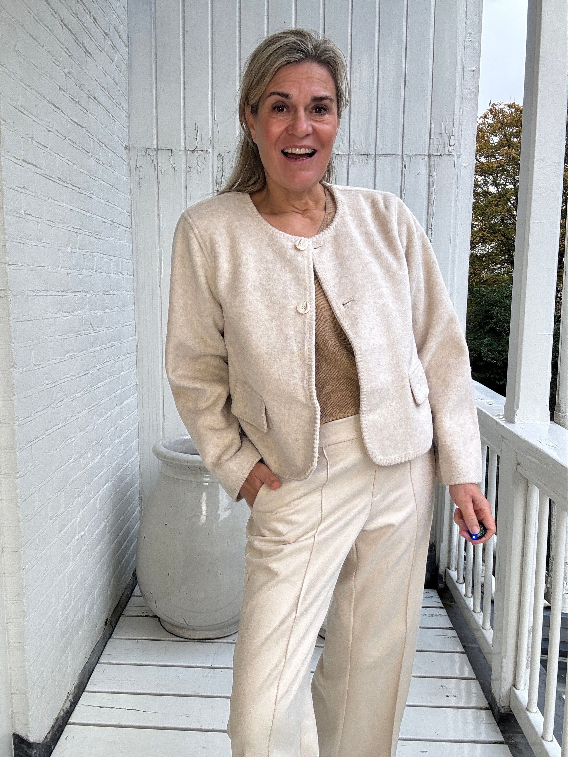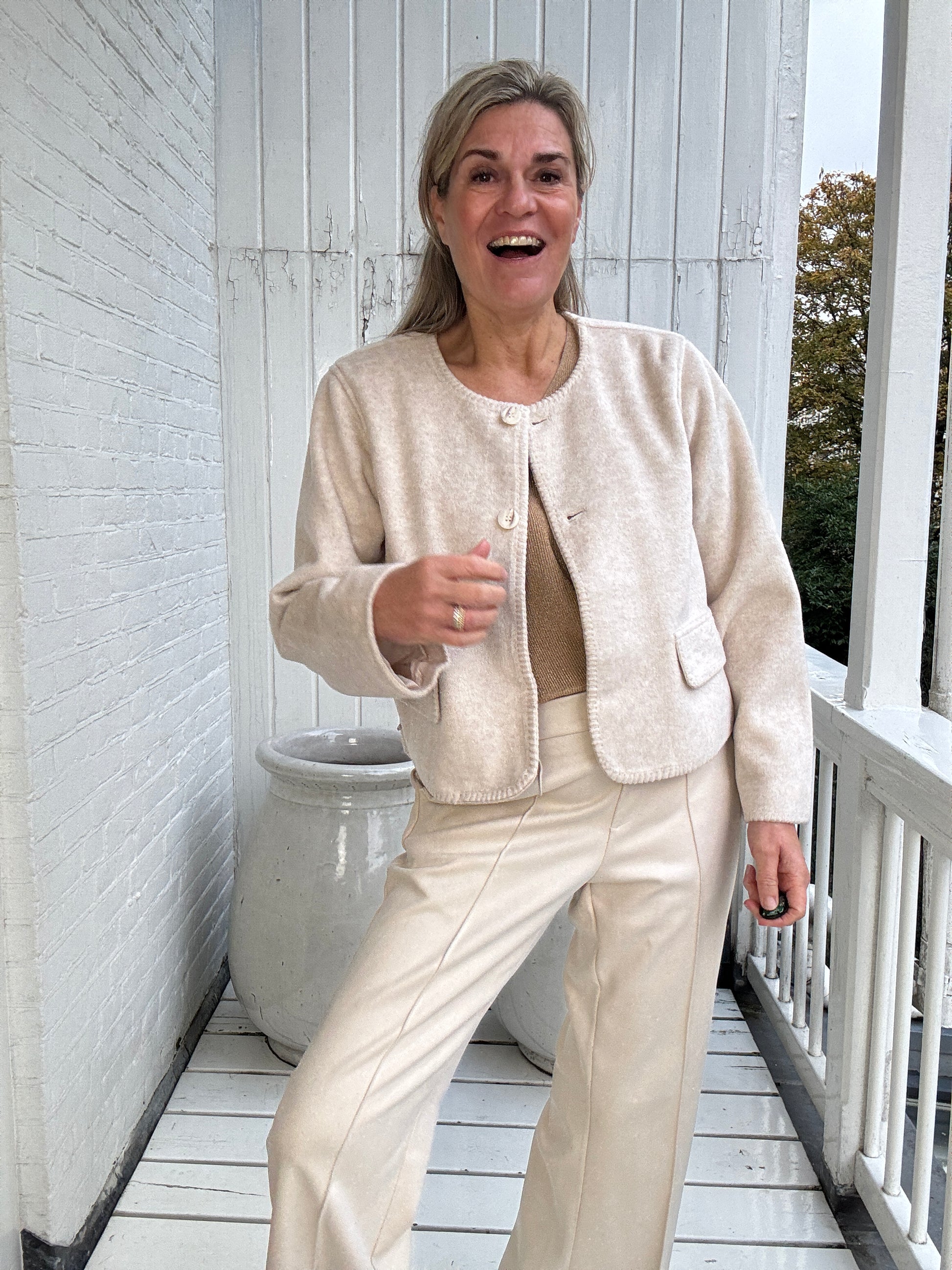 Het Chantal jacket is een stijlvolle zachte jas gemaakt van een mix van tencel en polyester en ontworpen in een off white kleur. Het jasje heeft een loose fit en een klassieke knoopsluiting.