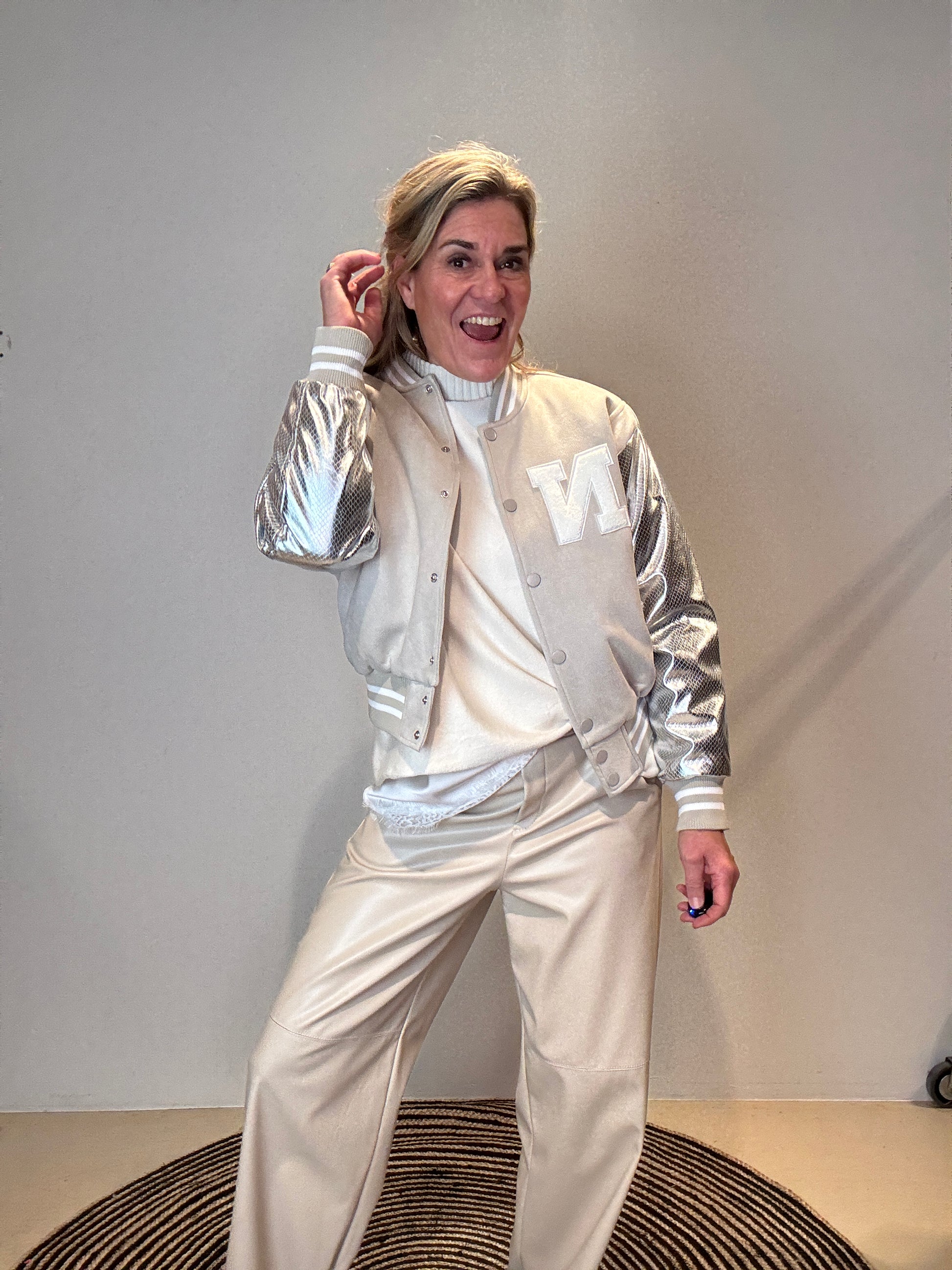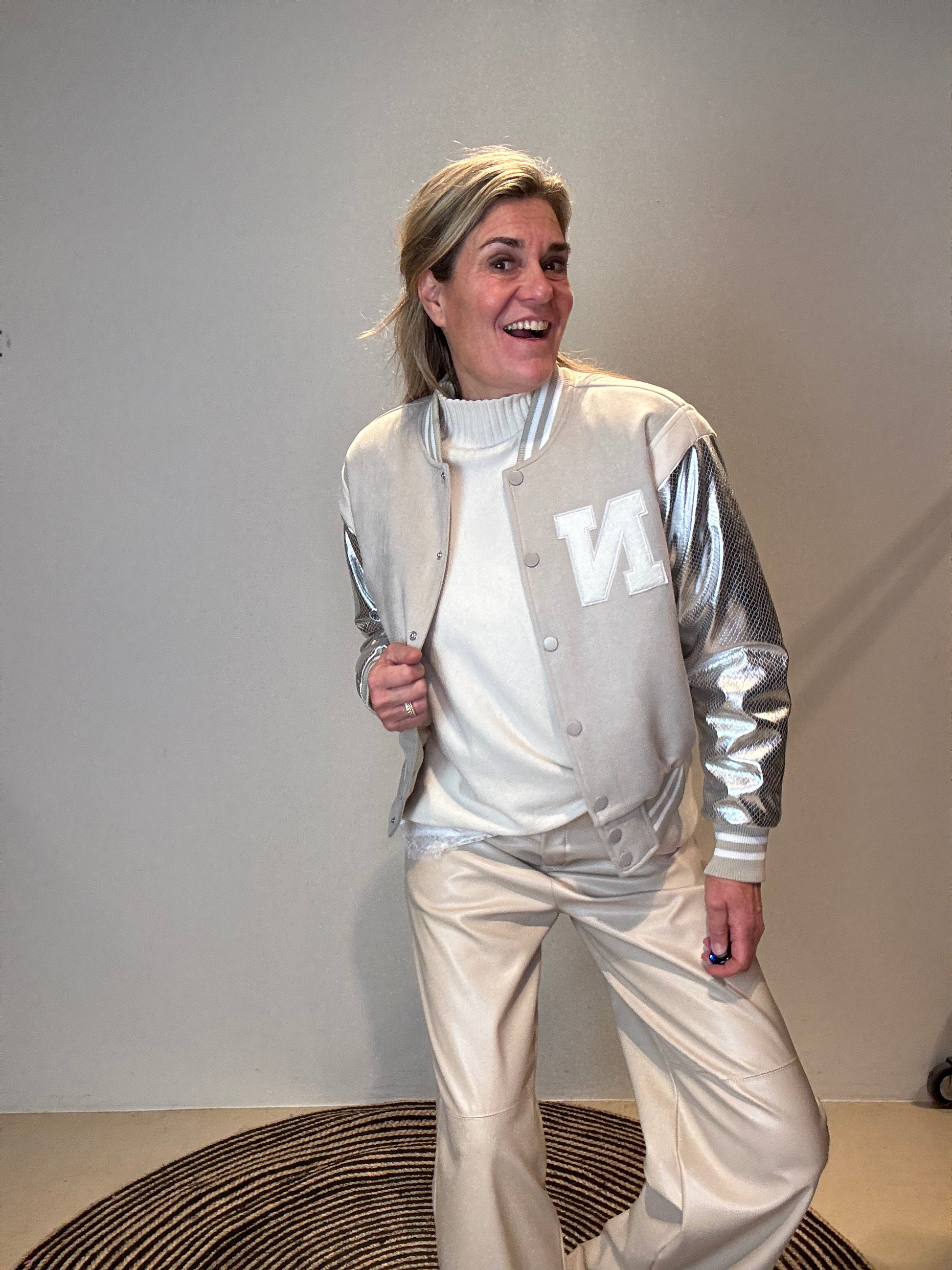 De topper van Nukus is toch wel deze trendy bomber met zijn zilveren mouwen en geweldige stofcombinaties. Deze wil je gewoon hebben!