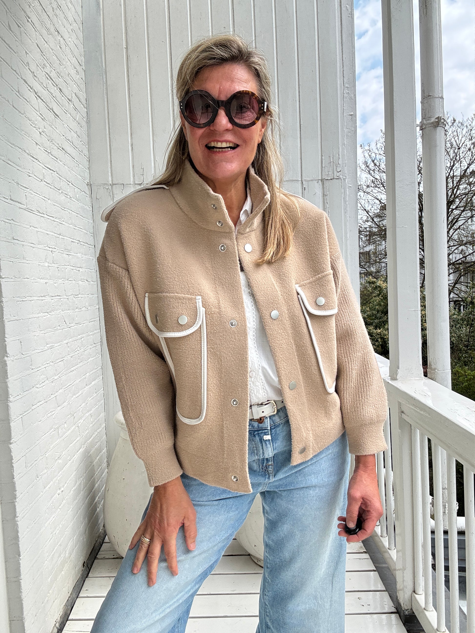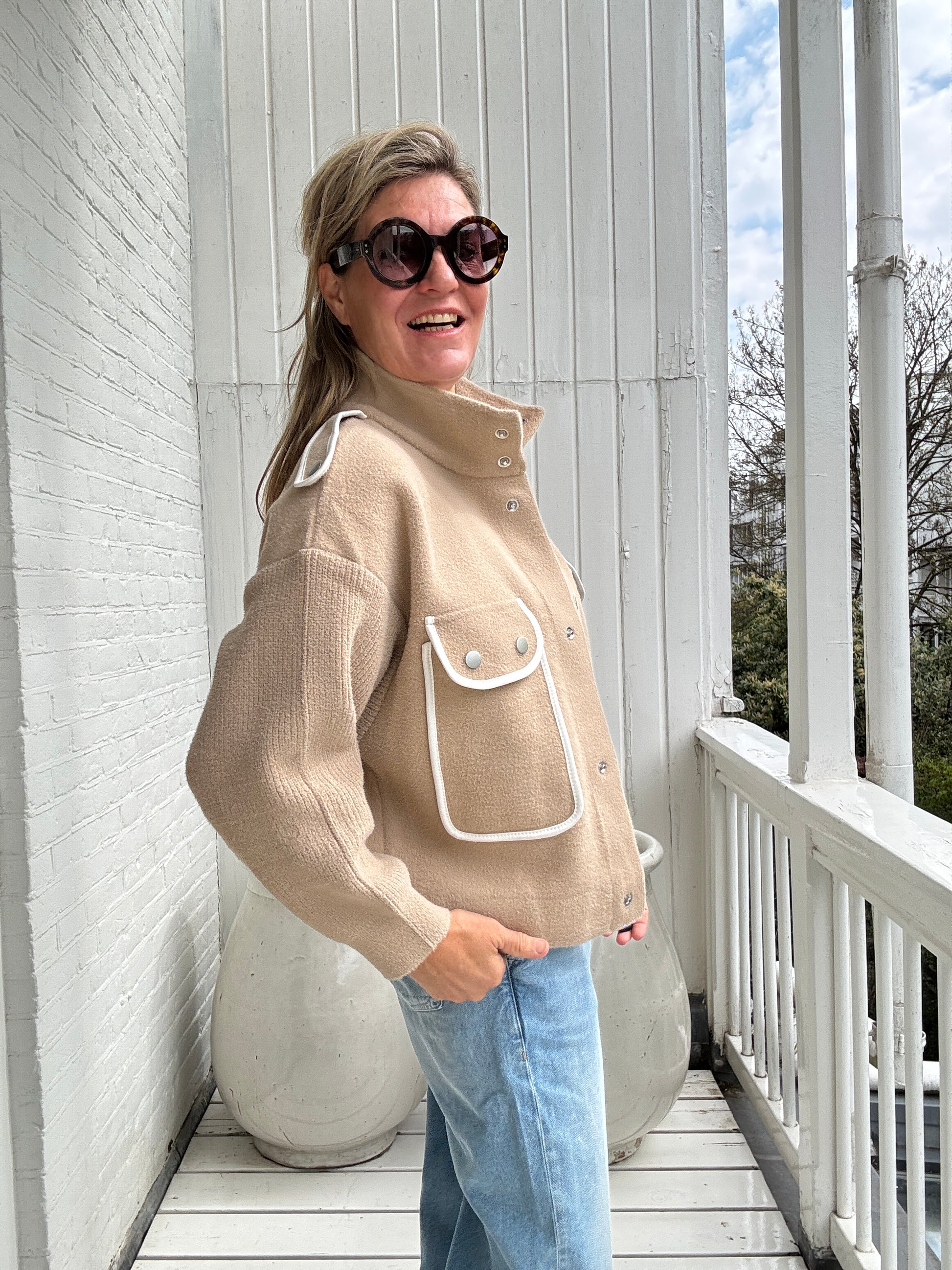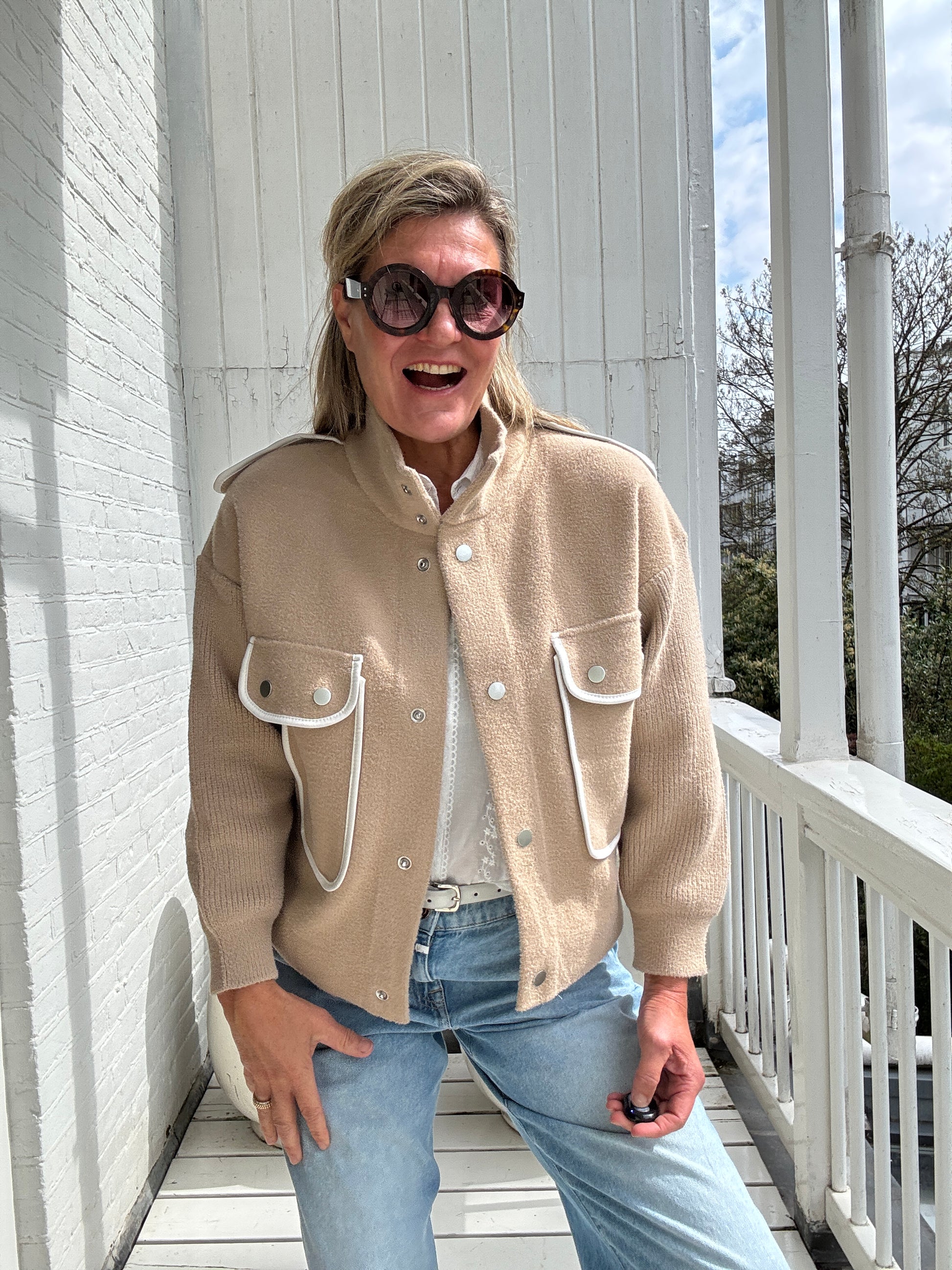 WOW! Dit jasje/vestje is te gek voor het voorjaar! Zie je zelf al flaneren door Parijs of Milaan in deze jas met opstaande kraag in het heerlijke voorjaarszonnetje!