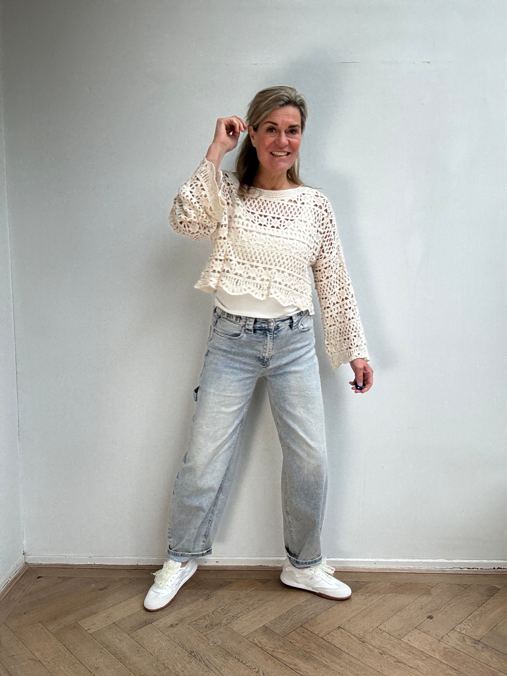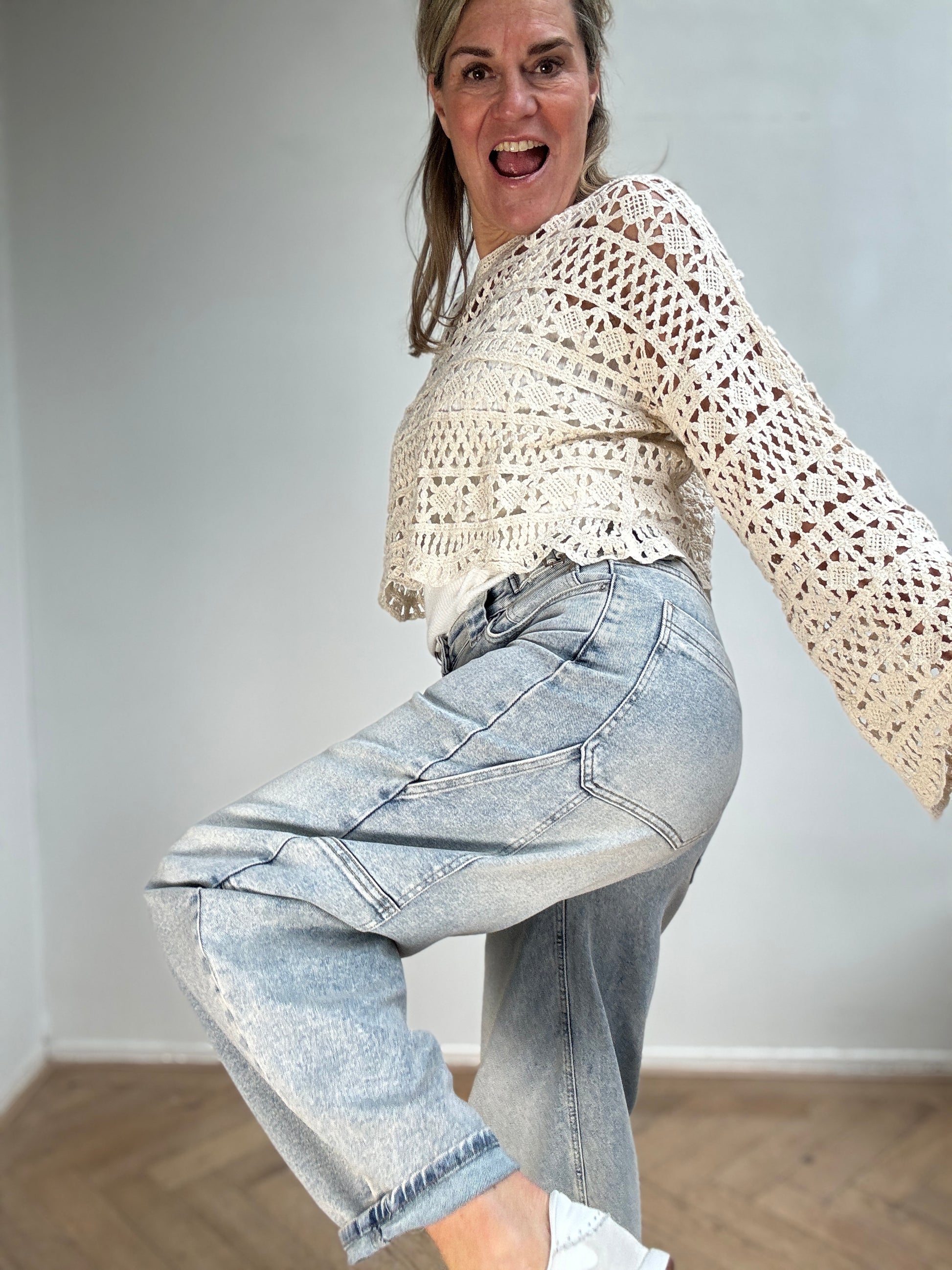 Stoer, vrouwelijk en net even anders is deze balloon jeans favoriet. De taille sluit mooi aan en wordt extra geaccentueerd door de subtiele gespsluitingen aan de zijkant. Zo zie je ze weinig!