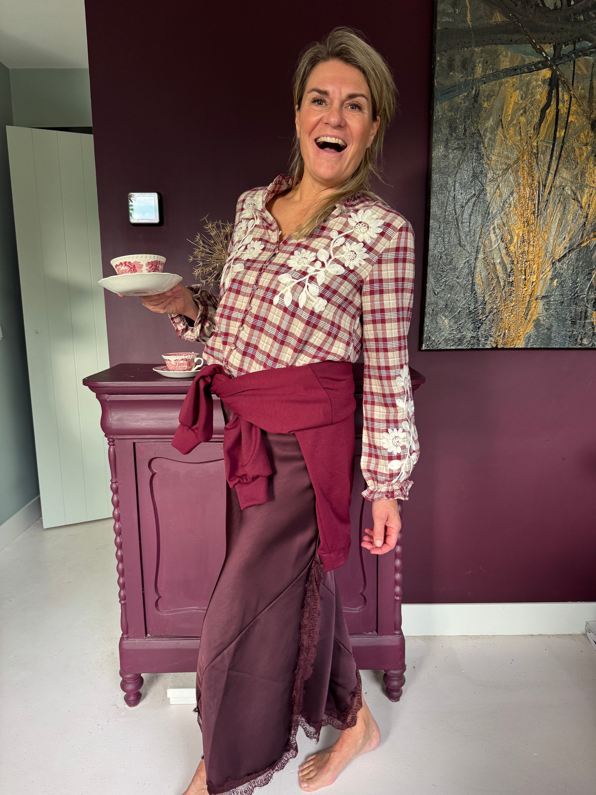 Hoe verleidelijk is de rok met een mooi vleugje kant langs de zoom wel niet... subtiel en oh zo vrouwelijk!