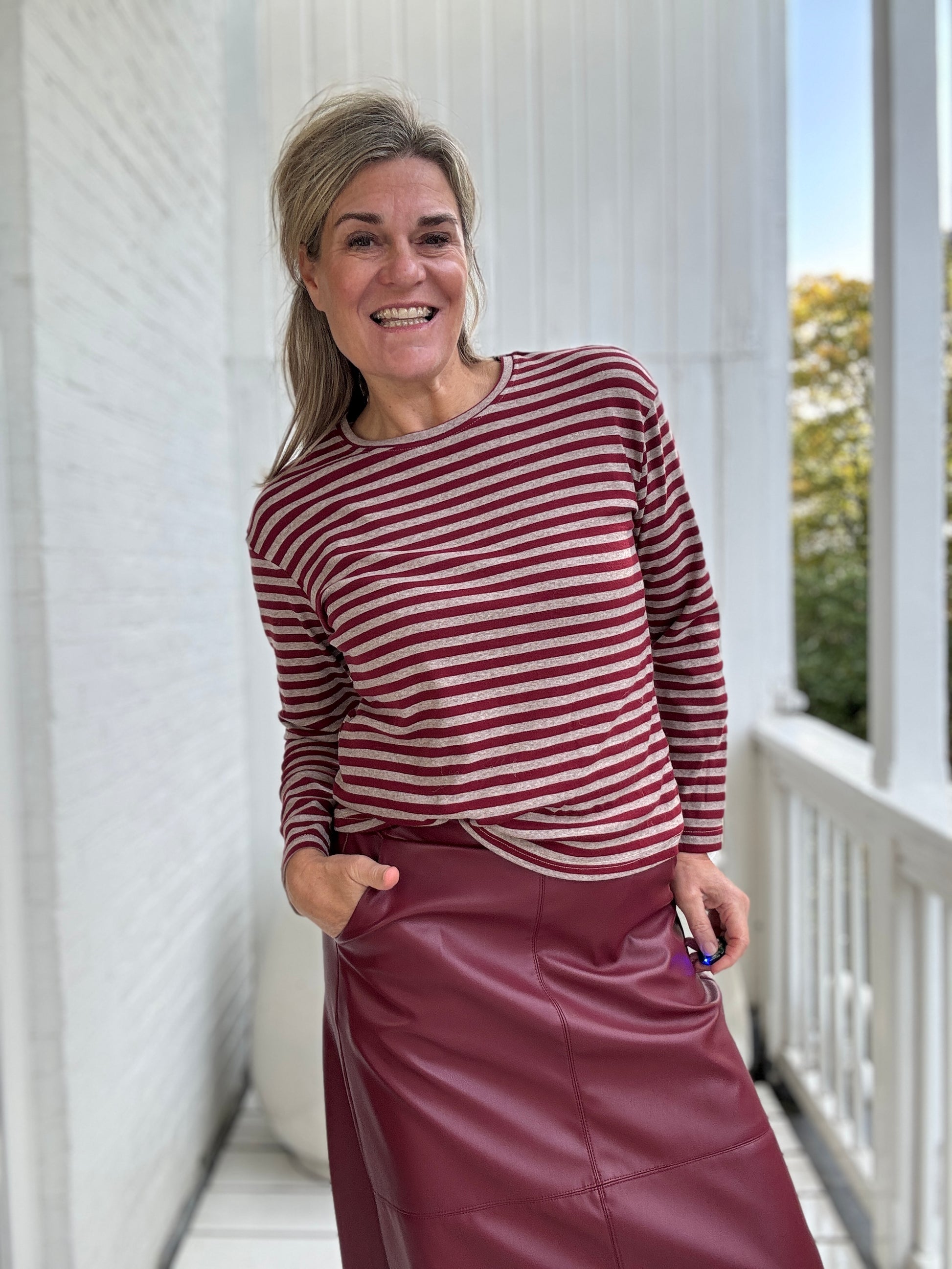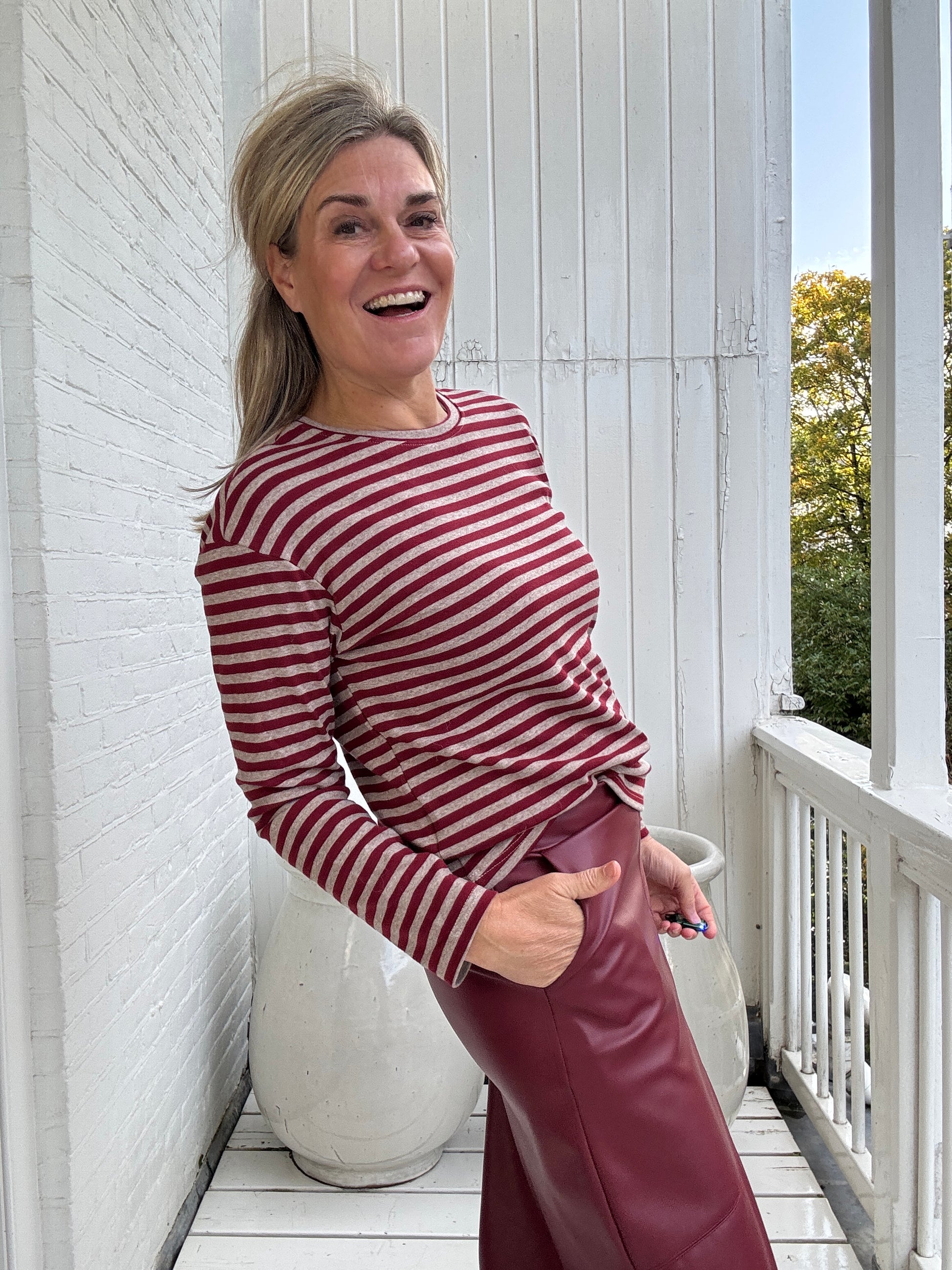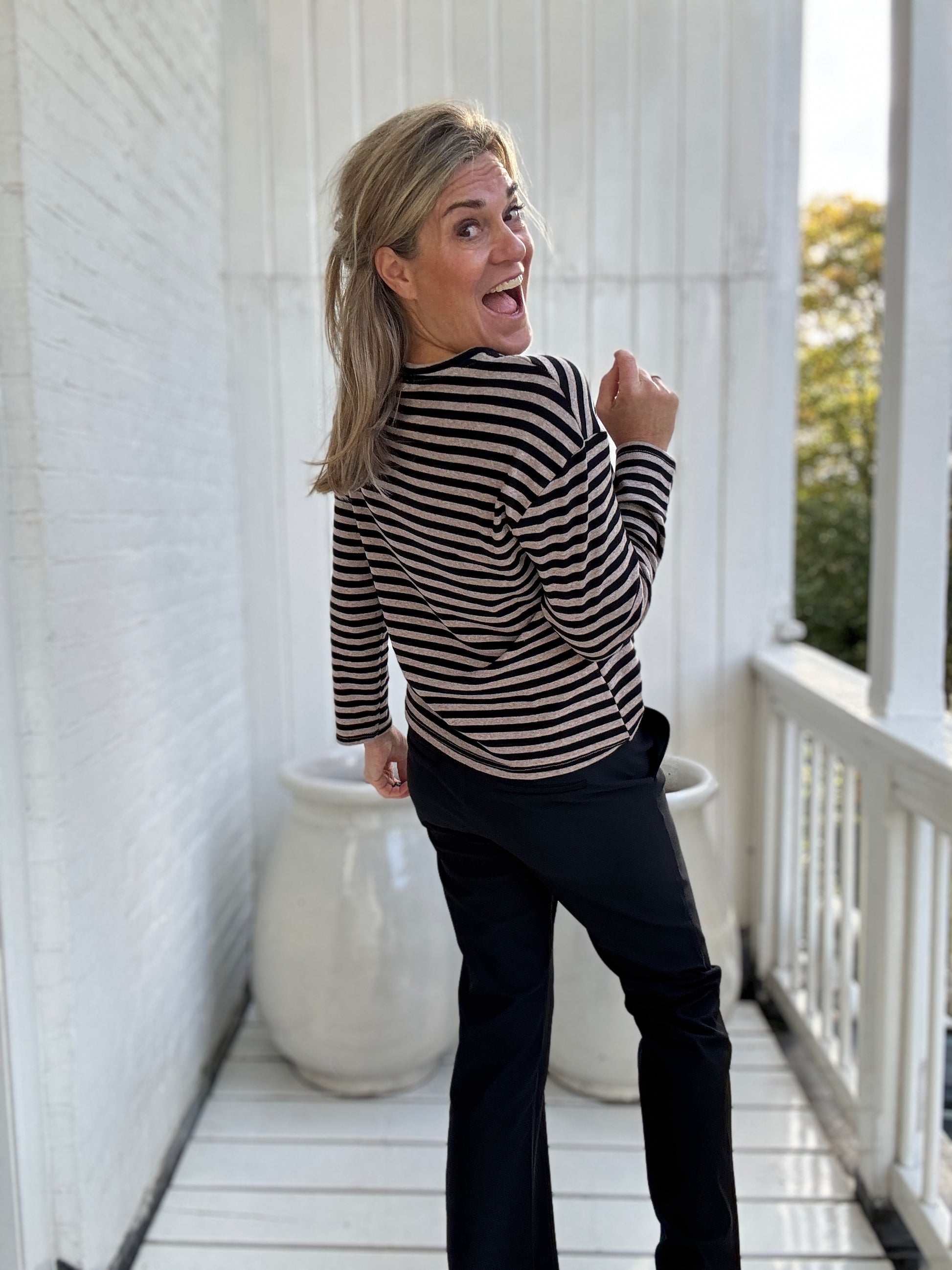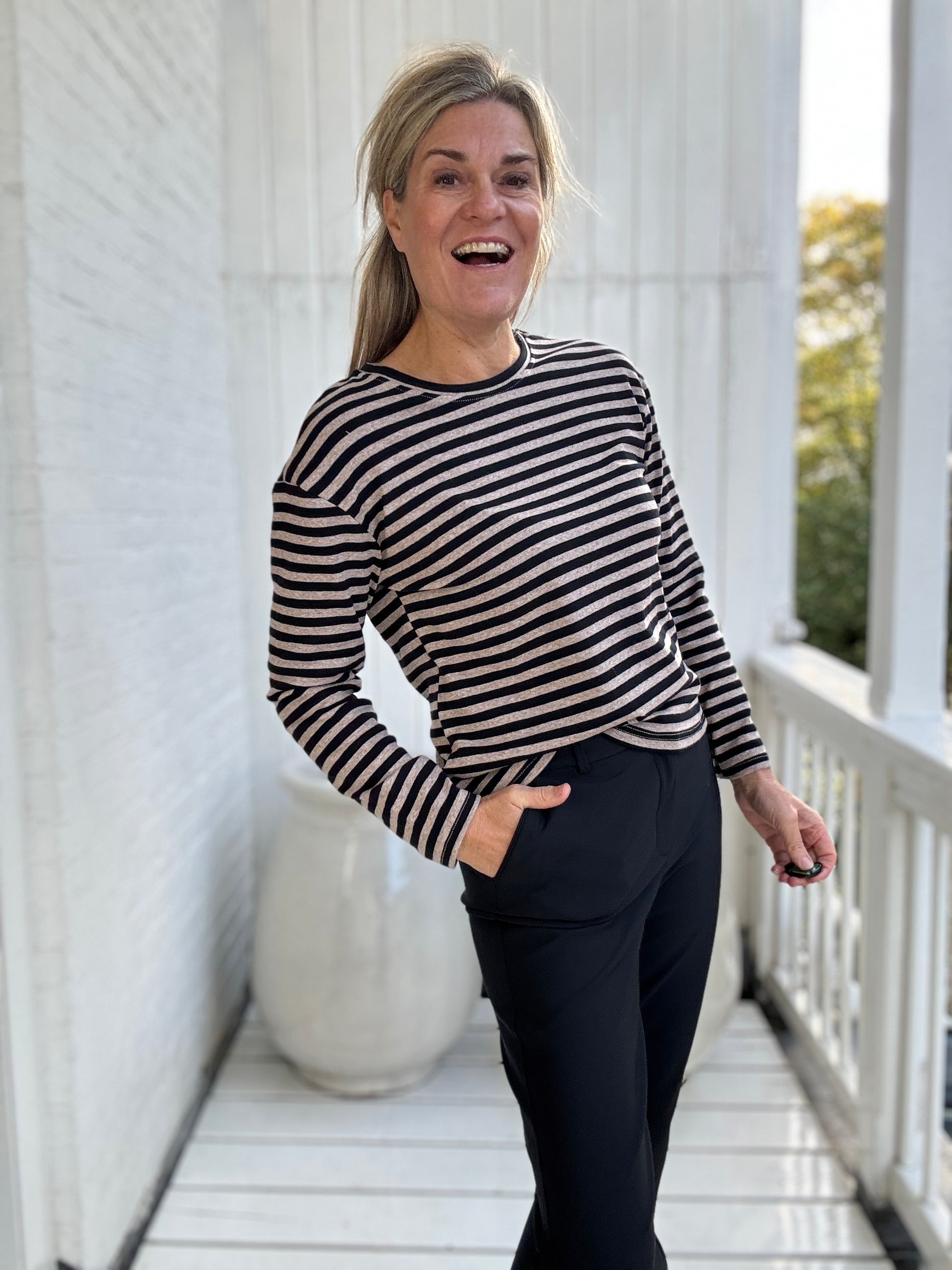 Oh la la - dat is een mooie streepjes top met mooie ronde hals en pasvorm!