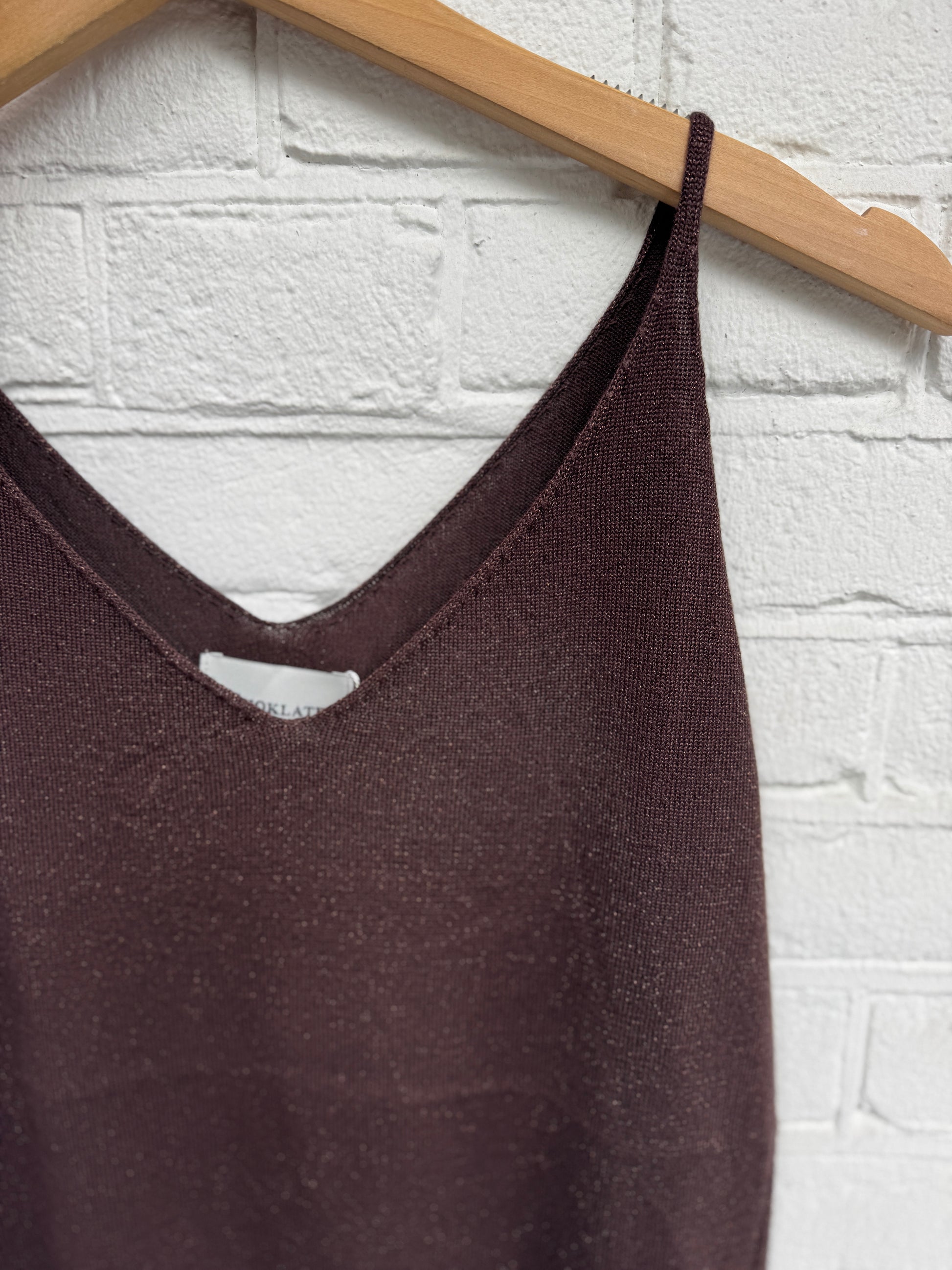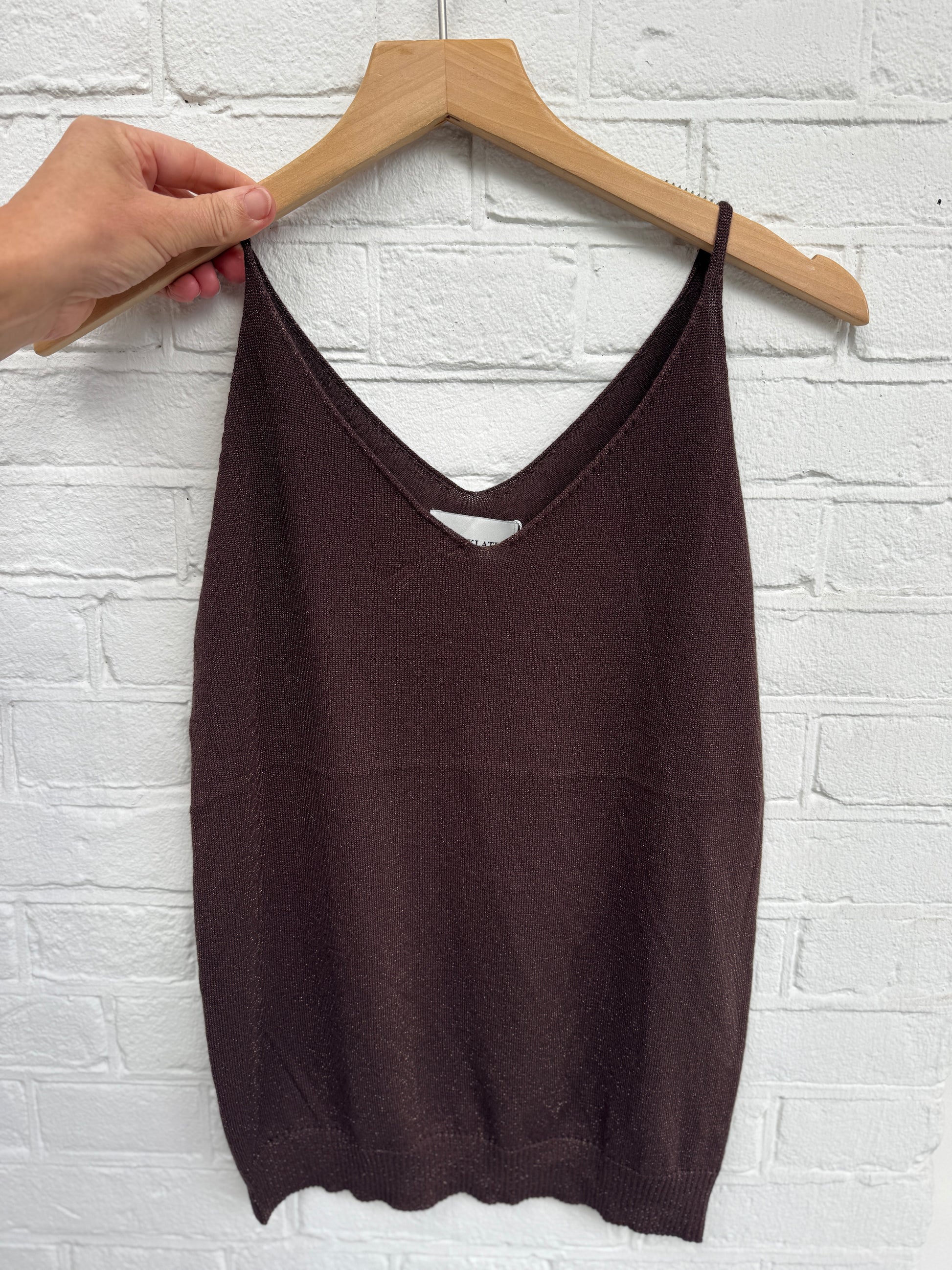 Deze top met fijn lurex draadje, slanke bandjes en mooie v-hals is vrouwelijk en stijlvol. Een prachtige luxe top.
