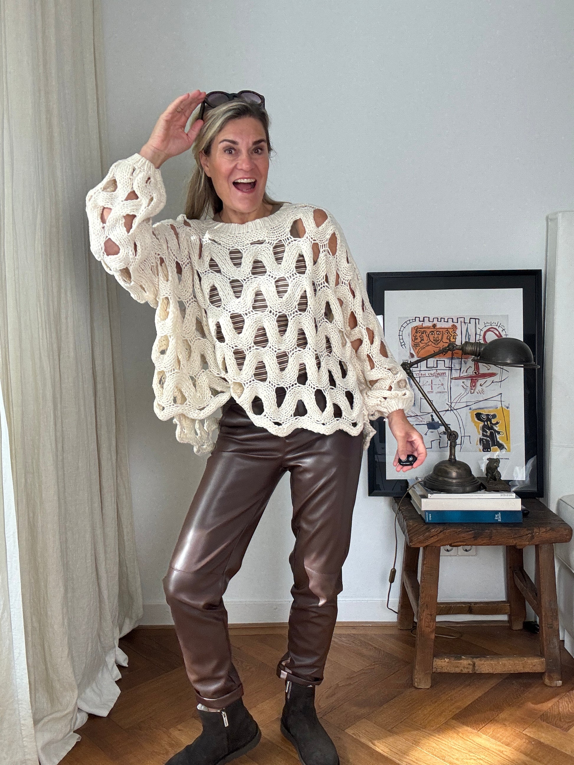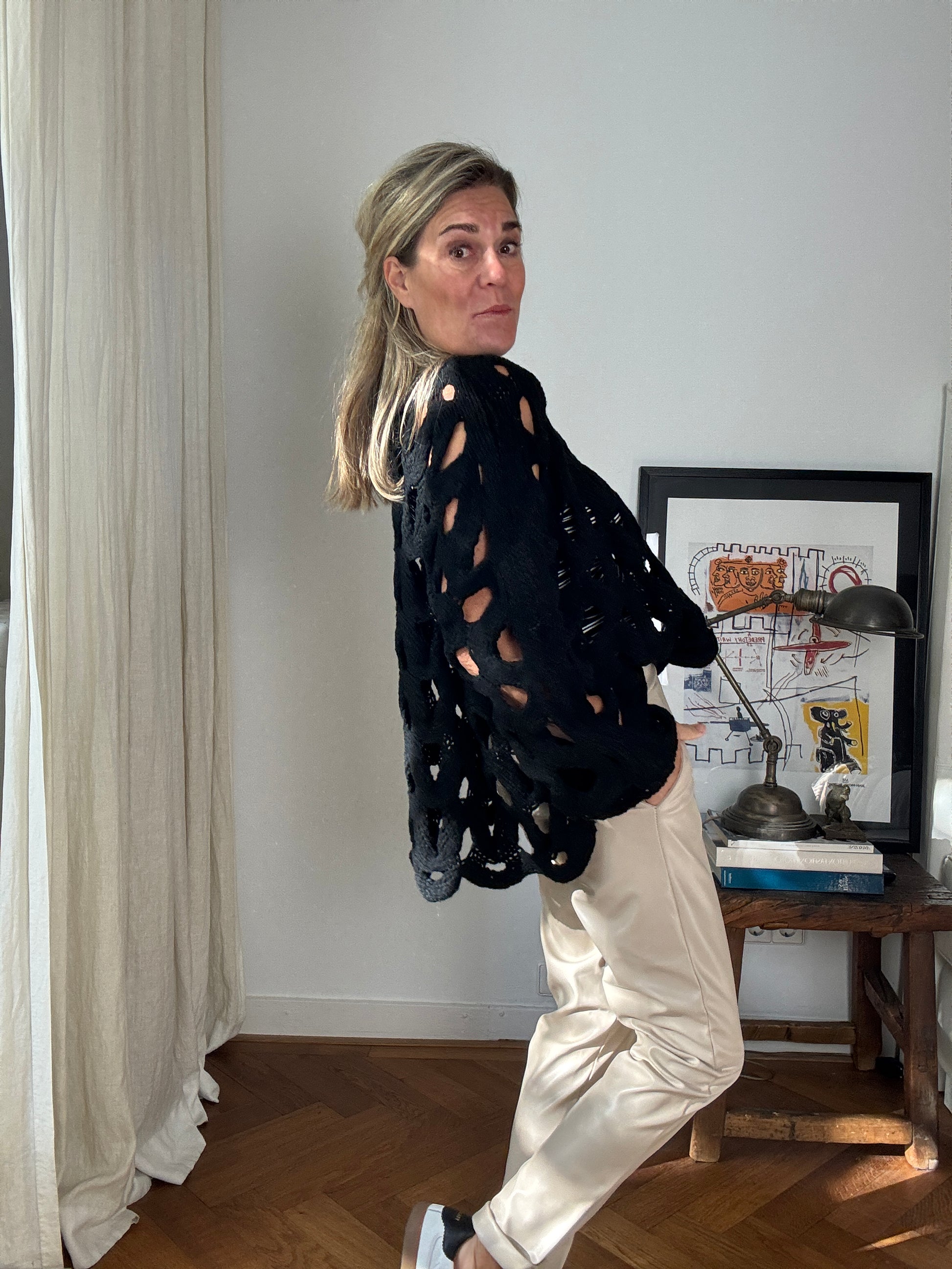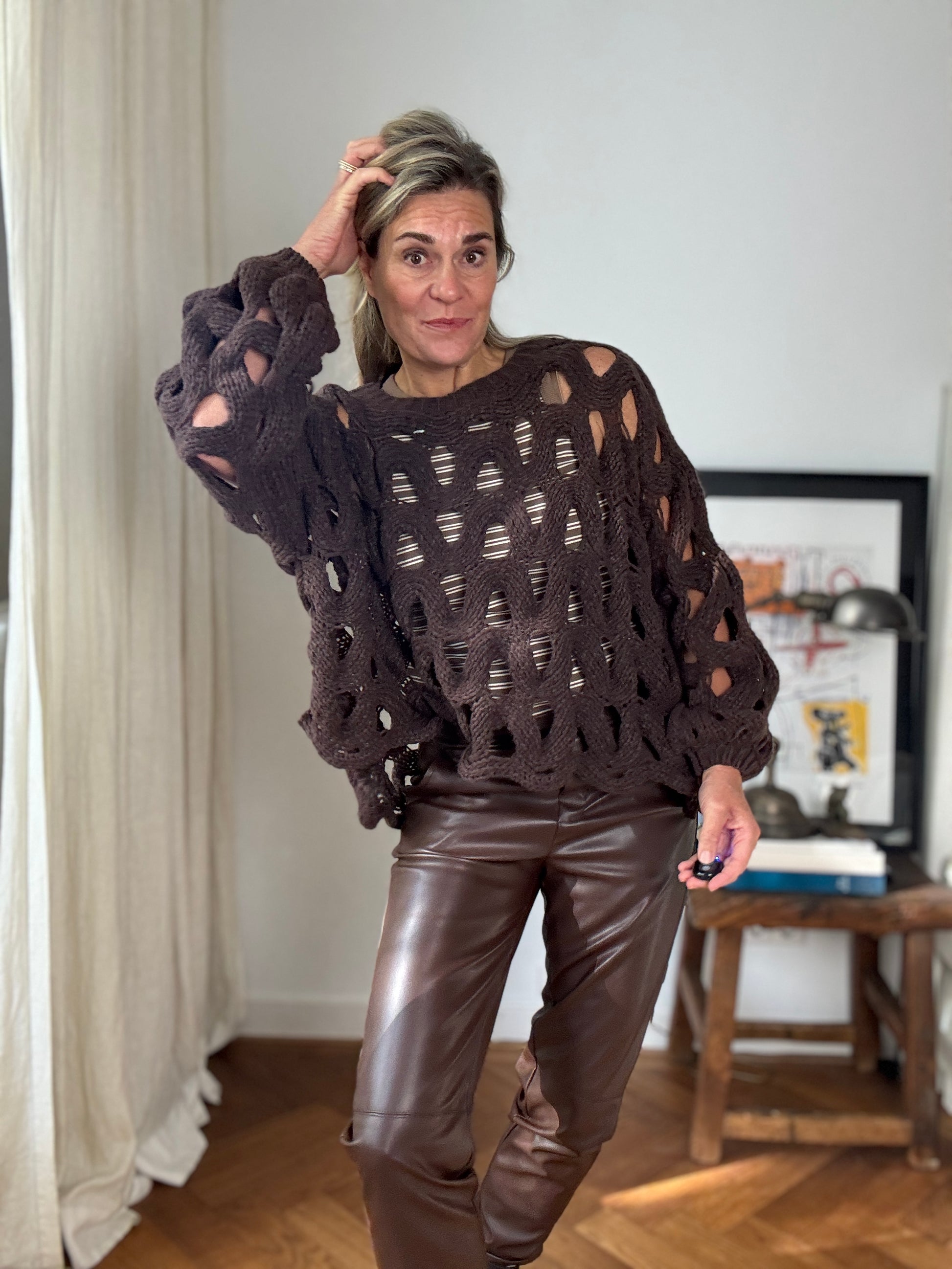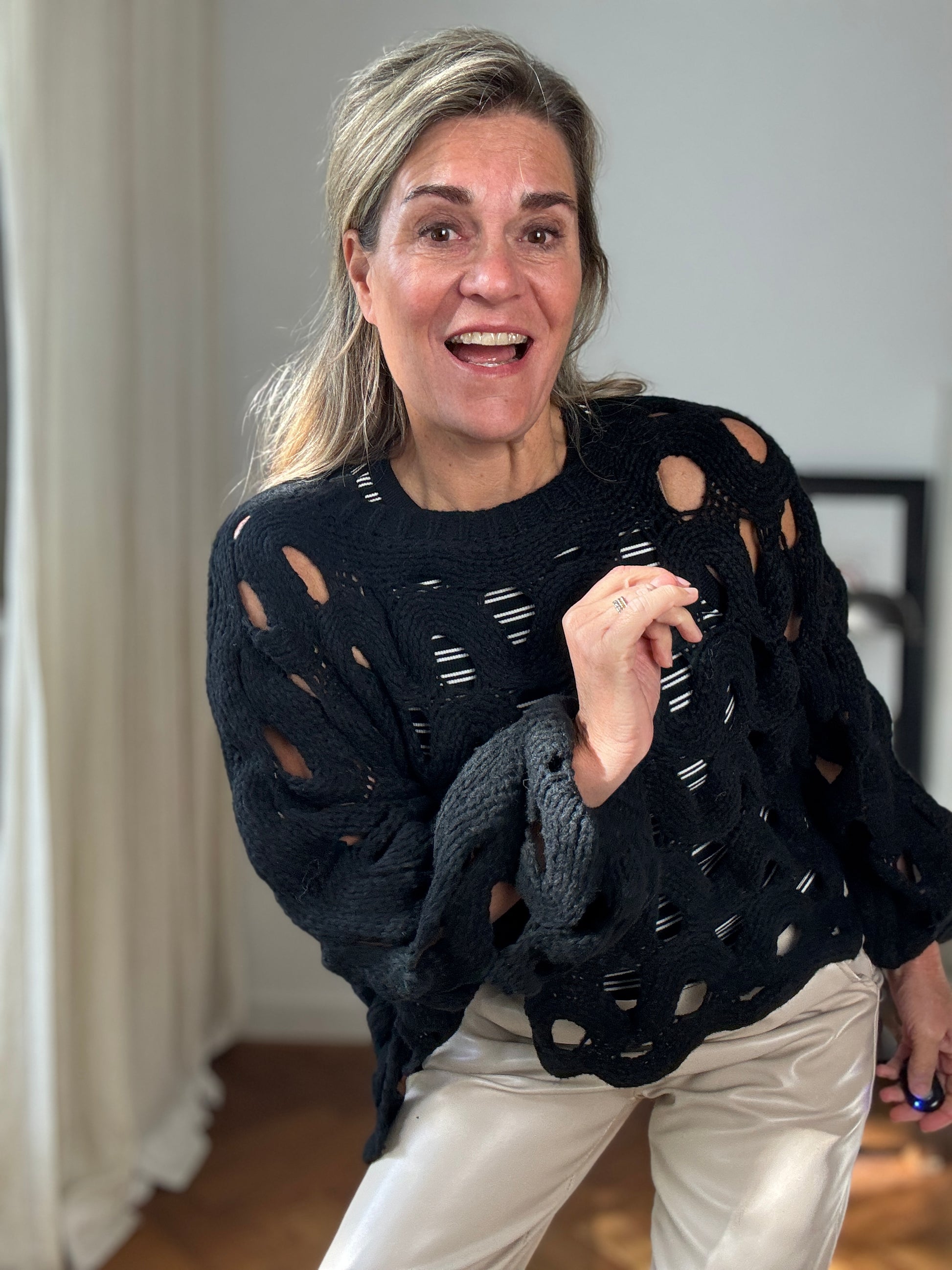 Eyecatcher alert! Deze ruimvallende, opengewerkte trui steel je gegarandeerd de show mee!