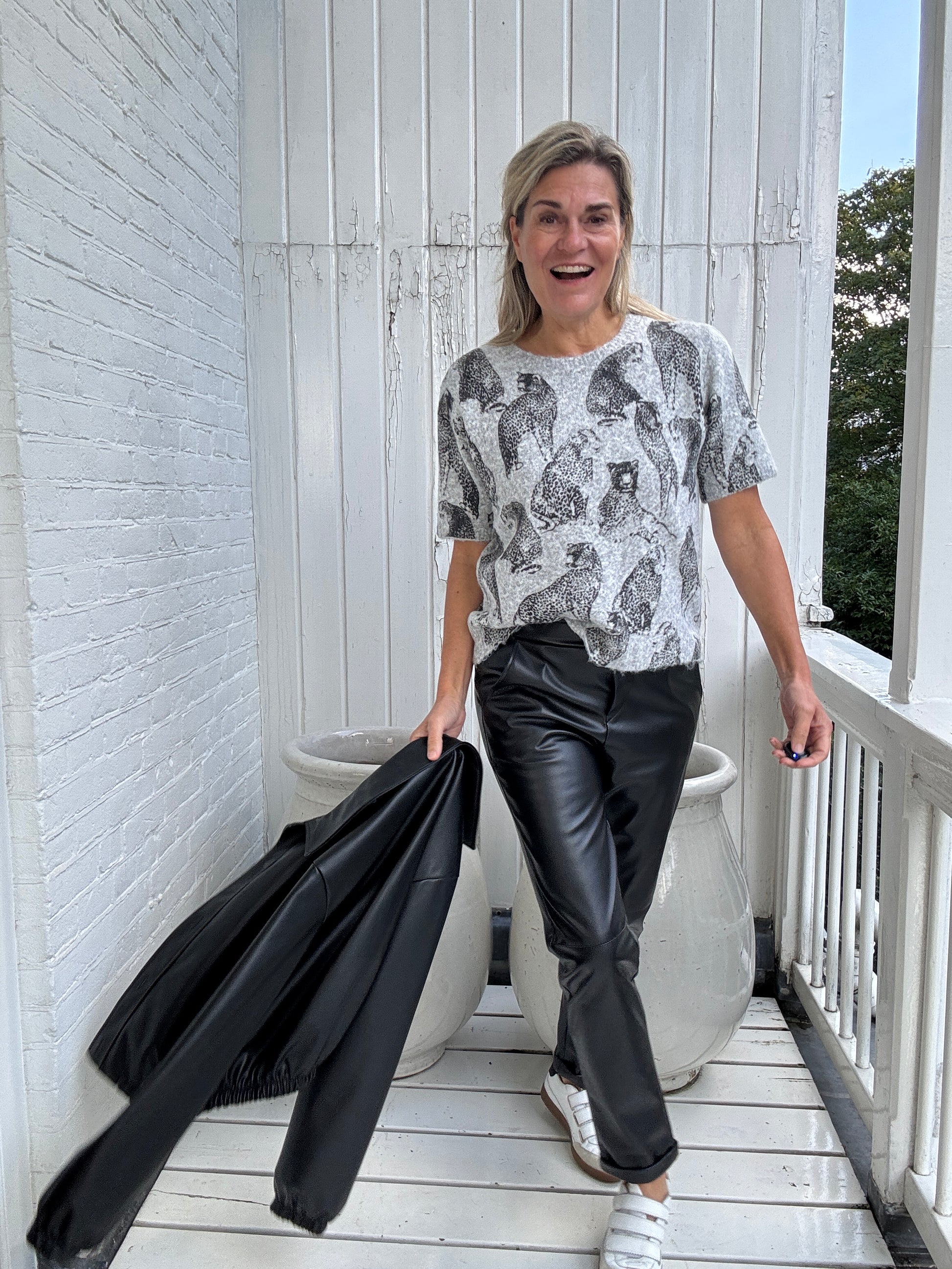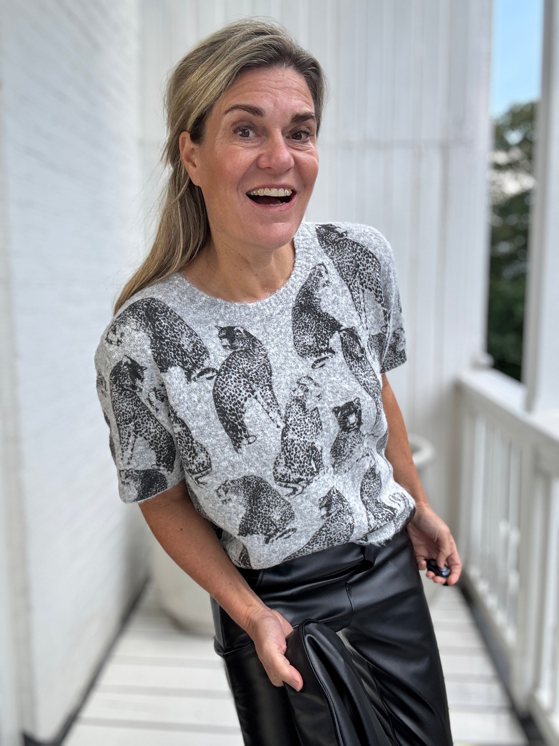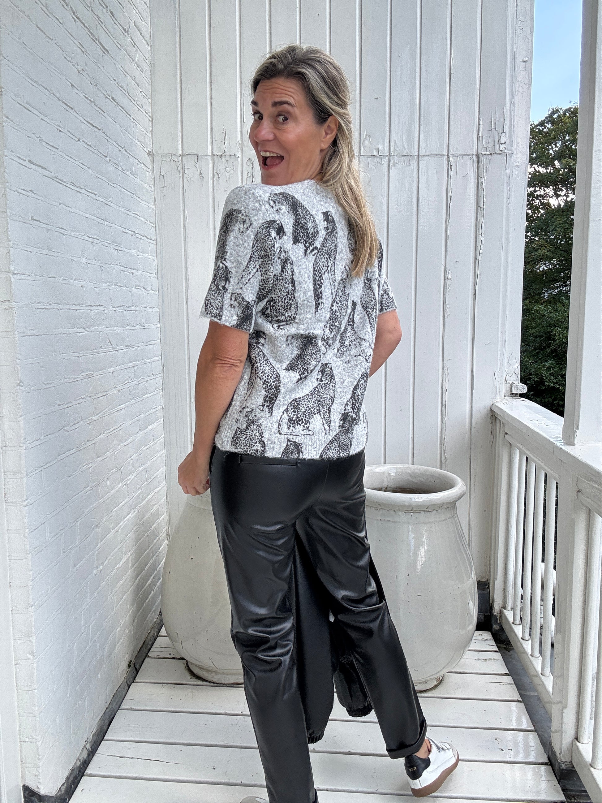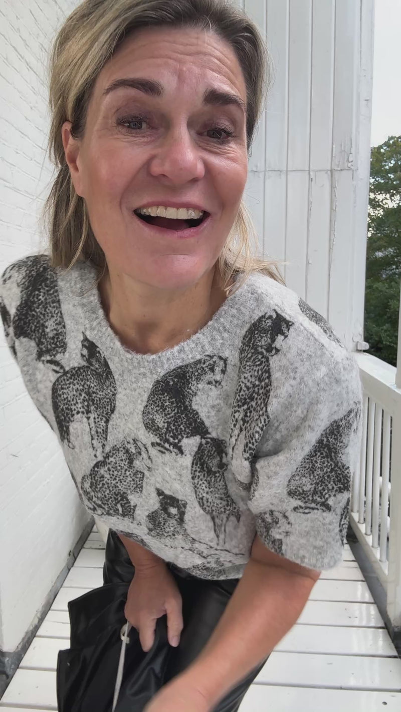 Hoe leuk! De luipaard print op deze mooie trui met korte mouwen laat je hart sneller kloppen!